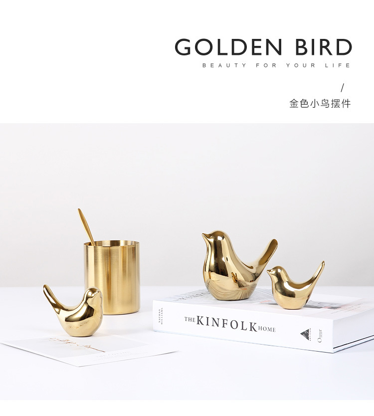 북유럽 크리에이 티브 황금 세라믹 새 공예 작은 장식품 거실 부드러운 장식 데스크탑 크로스 국경 장식 도매스토어 가기