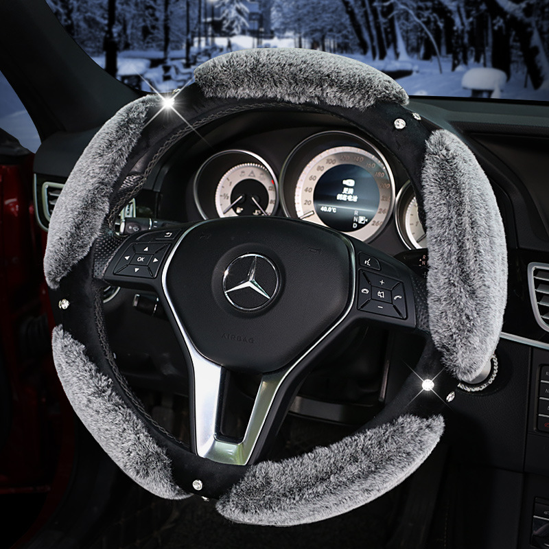 兔毛拼接水钻方向盘套