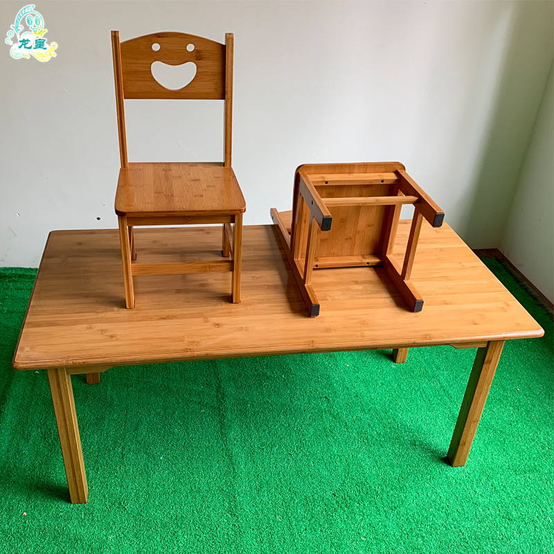 어린이 대나무 학습 테이블과 의자 세트 유치원 직사각형 6 인용 테이블 단단한 나무 조기 교육 게임 책상과 의자 도매스토어 가기