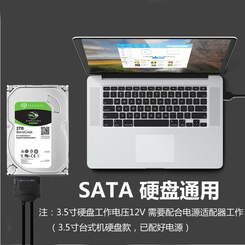 USB3.0 TO SATA转接线,采用USB3.0高速传输,兼容2.0接口,可以直接接入SATA接口的2.5寸笔记本硬盘(不能用在台式机硬盘上),让你的笔记本硬盘马上变成高速USB3.0的移动硬盘,平常应用只接入USB3.0的接口就可以了,如果碰到有的个别高功耗硬盘不工作,再请接入独立供电线就可以了工作了,让我们来方便的体验数据传输快感.