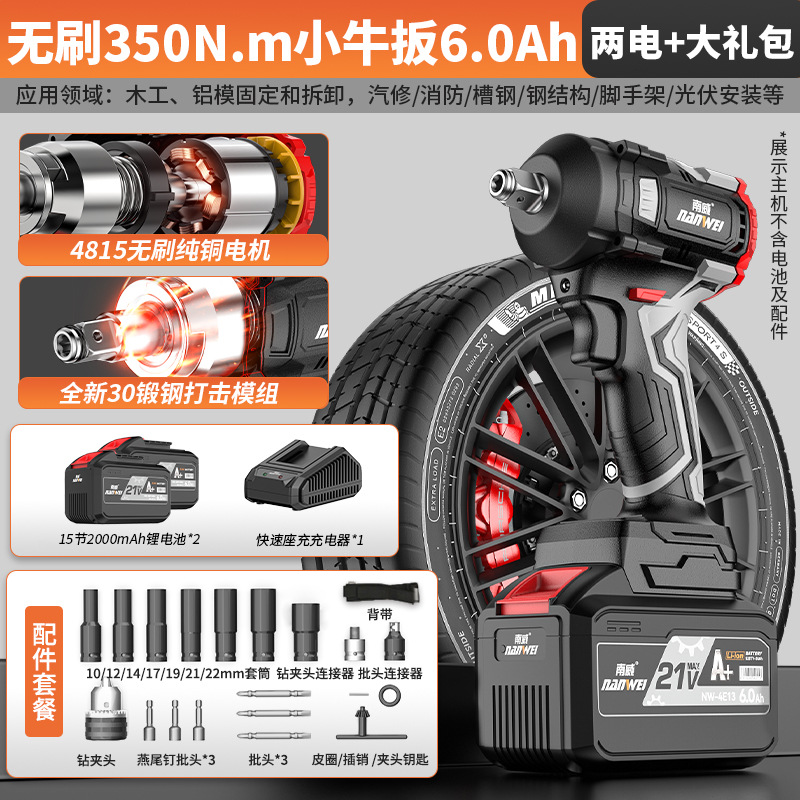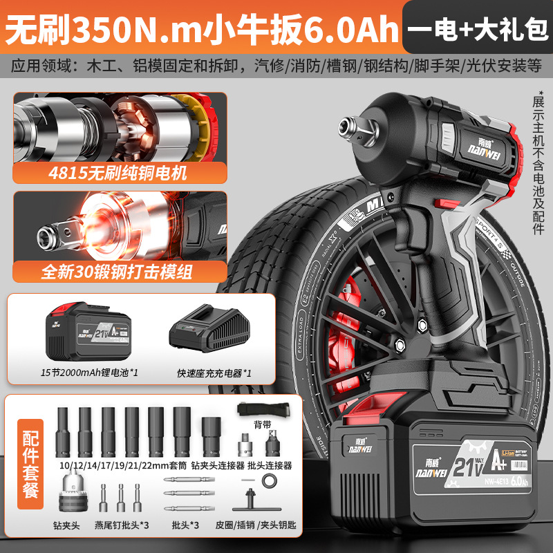 도매 전원 도구 브러시리스 리튬 전원 렌치 전기 렌치 발판 목공 충격 전기 바람 대포 충전 전기 드릴스토어 가기