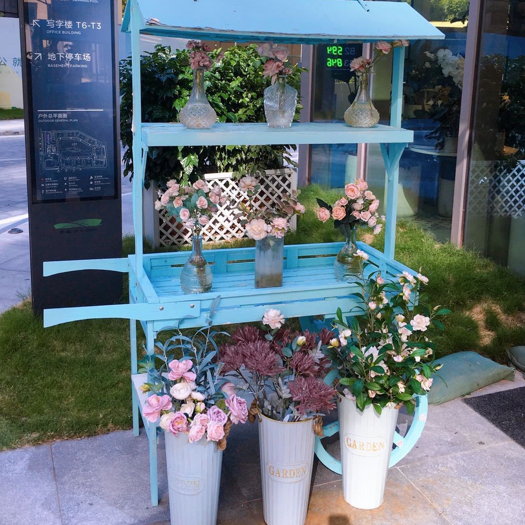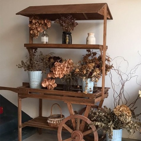 아메리칸 스타일 컨트리 빈티지 나무 살찐 꽃 랙 트롤리 플라워 룸 창 보관 랙 플라워 샵 디스플레이 랙