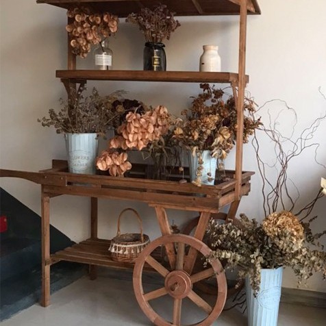 아메리칸 스타일 컨트리 빈티지 나무 살찐 꽃 랙 트롤리 플라워 룸 창 보관 랙 플라워 샵 디스플레이 랙스토어 가기