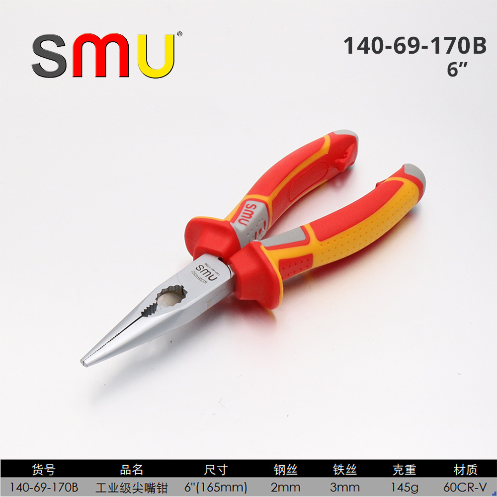 독일 산업 편심 와이어 펜치 바늘 코 펜치 대각선 펜치 큰 머리 경사 6 인치 7 인치 8 인치 SMU 전기 기사