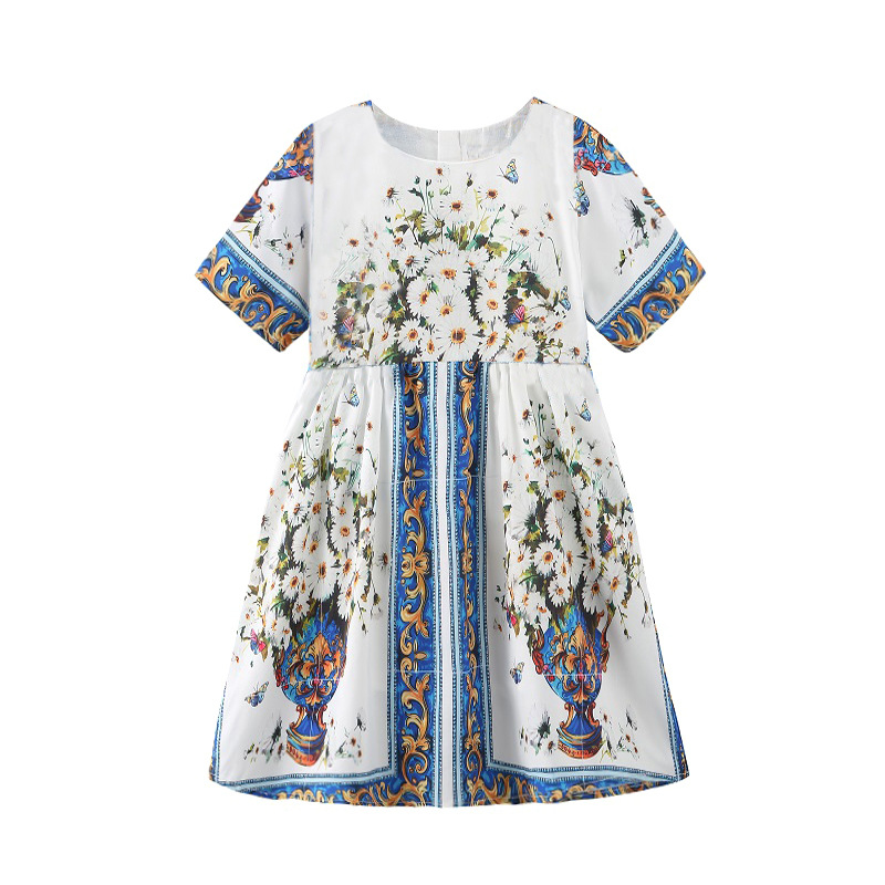 2025 봄 새로운 어린이 스커트 소녀 데이지 코트 인쇄 드레스 아기 스커트 셔츠 아동 의류 도매