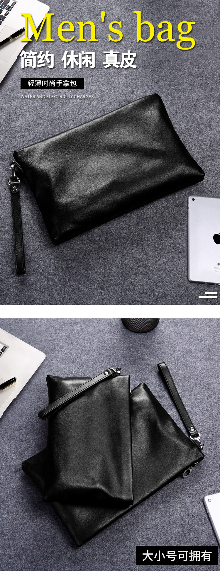 새로운 남성 가방 정품 가죽 캐주얼 핸드백 첫 번째 레이어 소 가죽 봉투 가방 대용량 클러치 백 부드러운 가죽 남성 클러치 백