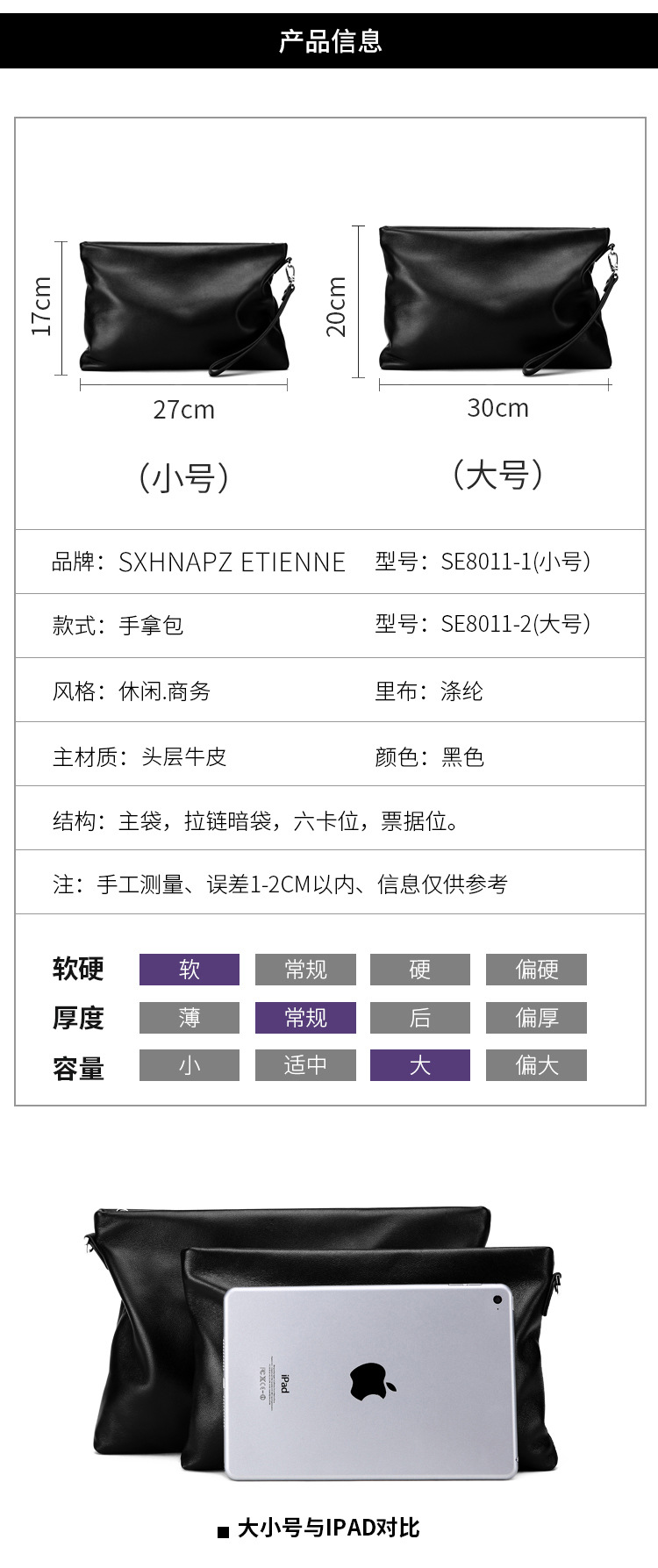 小号27cm宽*17cm高*2cm厚     大号30cm宽*20cm高*2cm厚