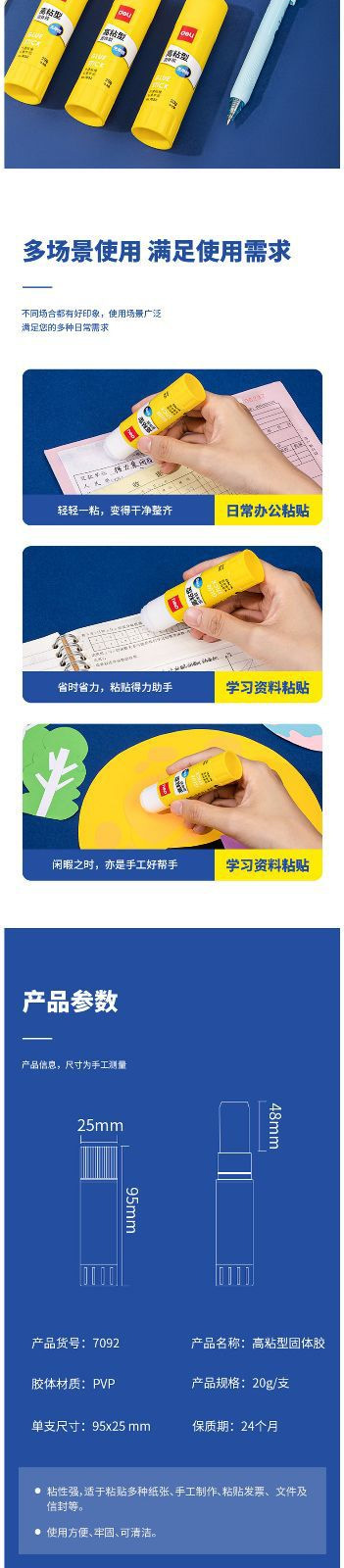 델리 7092 고체 접착제 스틱 도매 고점도 학생 어린이 문구 사무용품 유치원 손 접착제스토어 가기