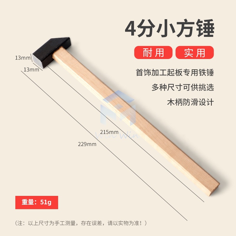 사각 트리밍 망치 나무 손잡이 금 망치 수동 작은 망치 피팅 망치 금과 실버 보석 DIY 태핑 도구