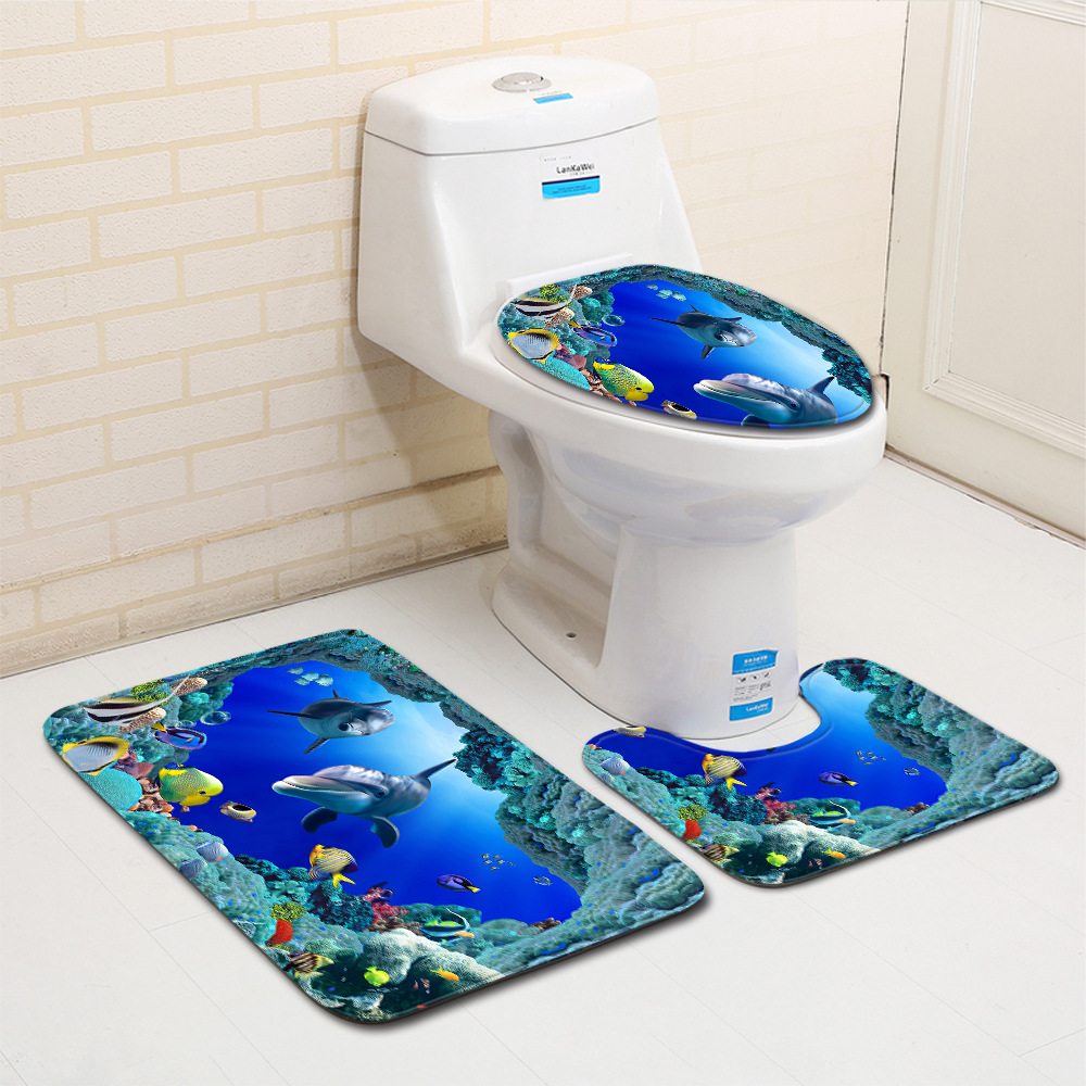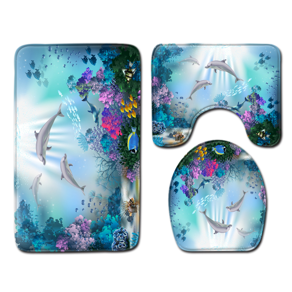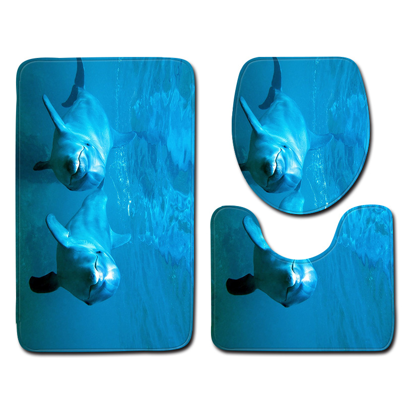 돌고래 바다 3D 스타일 욕실 바닥 매트 세트 미끄럼 방지 발 매트 크로스-국경 뜨거운 판매 공급 패턴스토어 가기