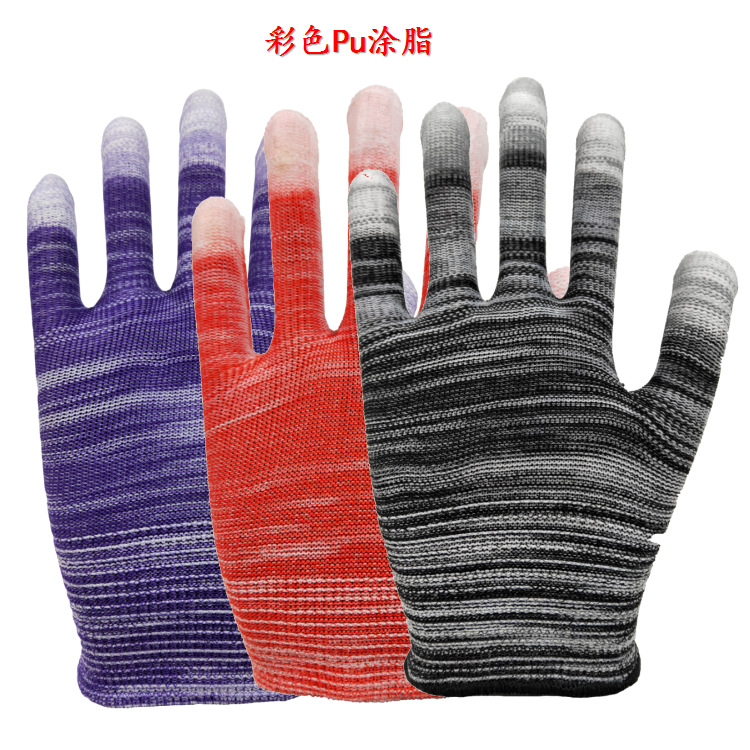 手套芯3作业礼仪手套橘边线手套400g灯罩棉600g毛纺600g纱线手套白色PU涂指彩色pu涂指纱线点胶