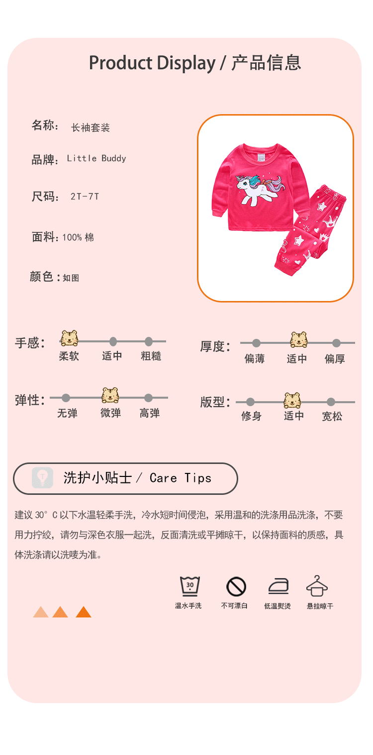 리틀버디 봄가을 면 소재 아동용 잠옷 여아용 아동복 긴팔 세트스토어 가기
