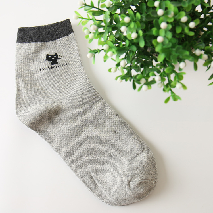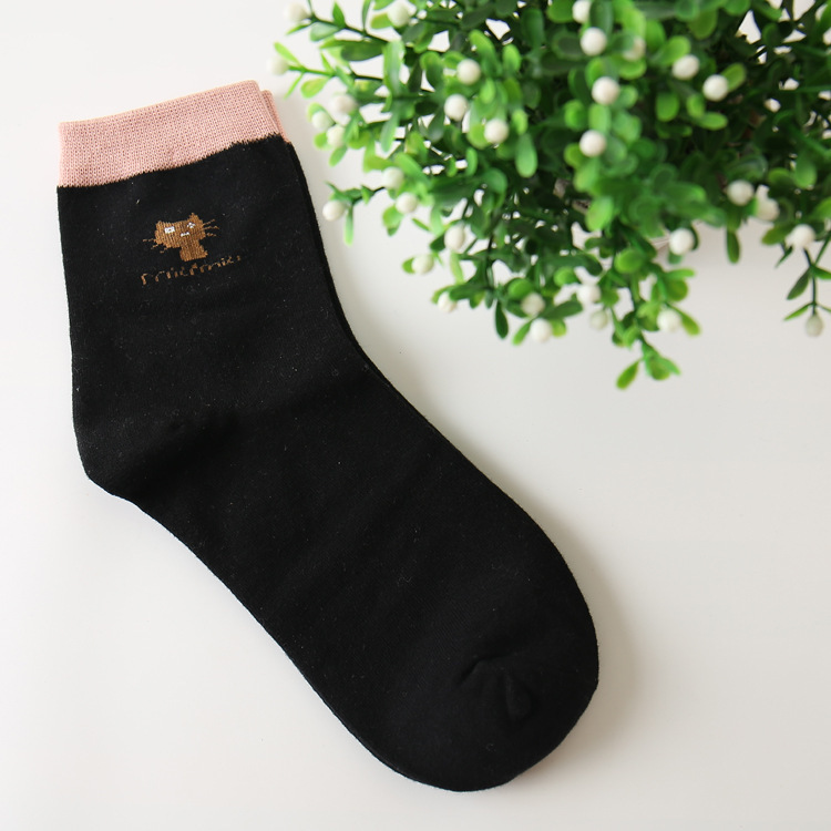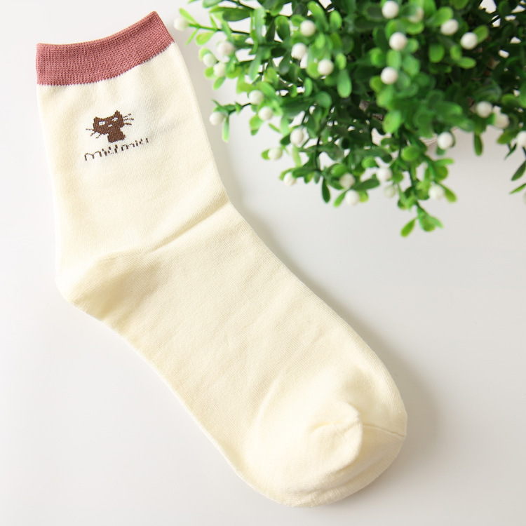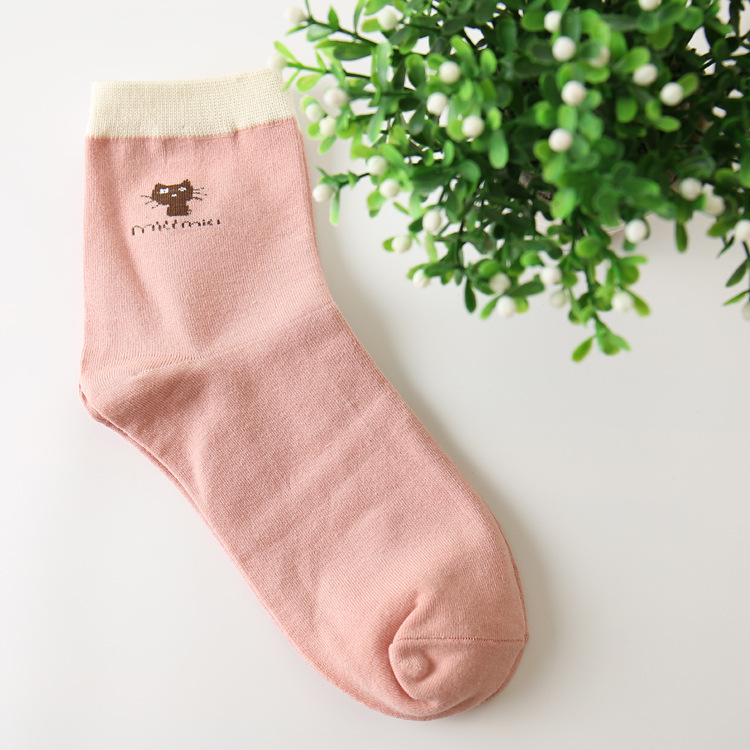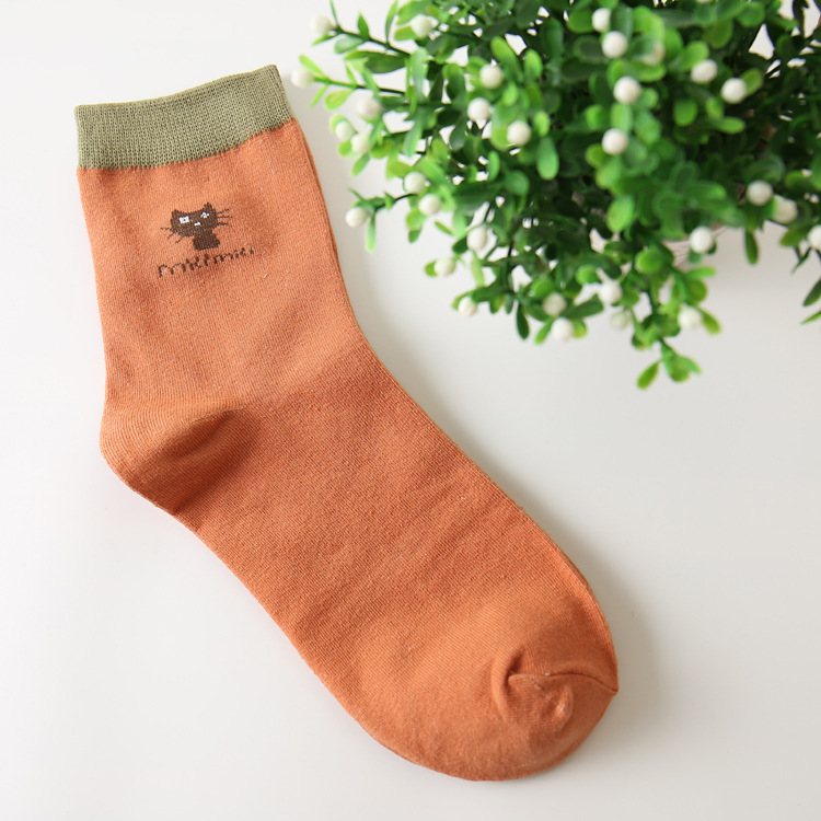 주지 봄가을 여성 양말 캔디 컬러 고양이 만화 양말 면 중목 여성 양말 캐주얼 여성 양말 제조업체 도매스토어 가기