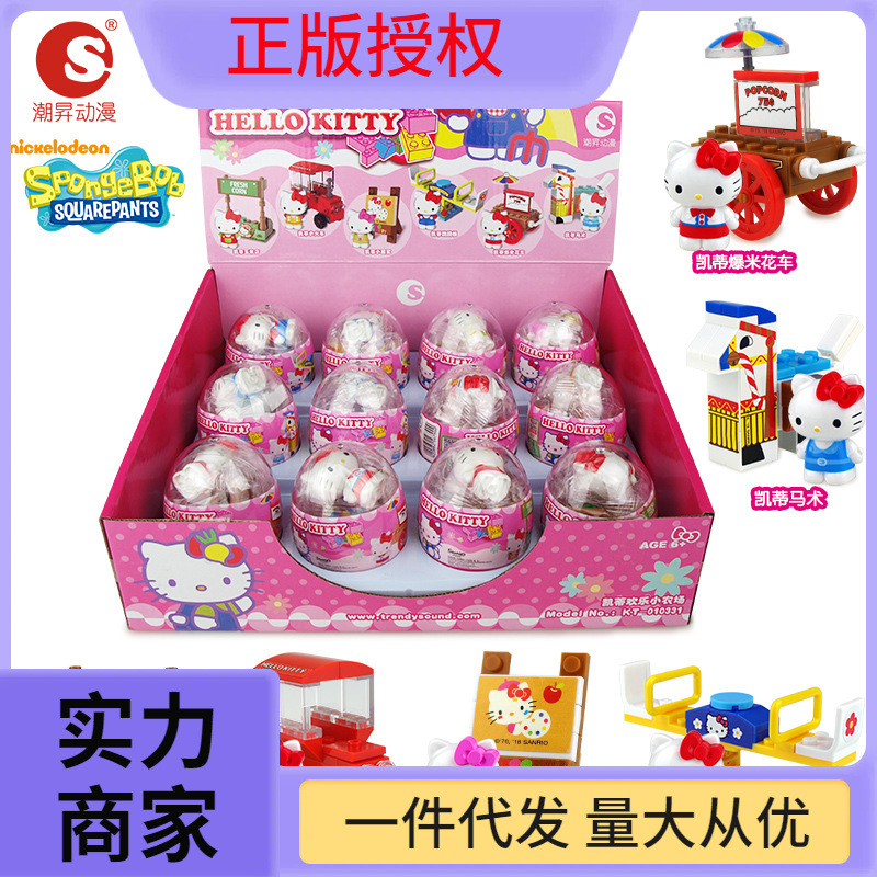 조수 상승 애니메이션 산리오 헬로 키티 블라인드 박스 쿨 루미 빌딩 블록 풀 세트 Gashapon 여성 생일 장난감 선물스토어 가기
