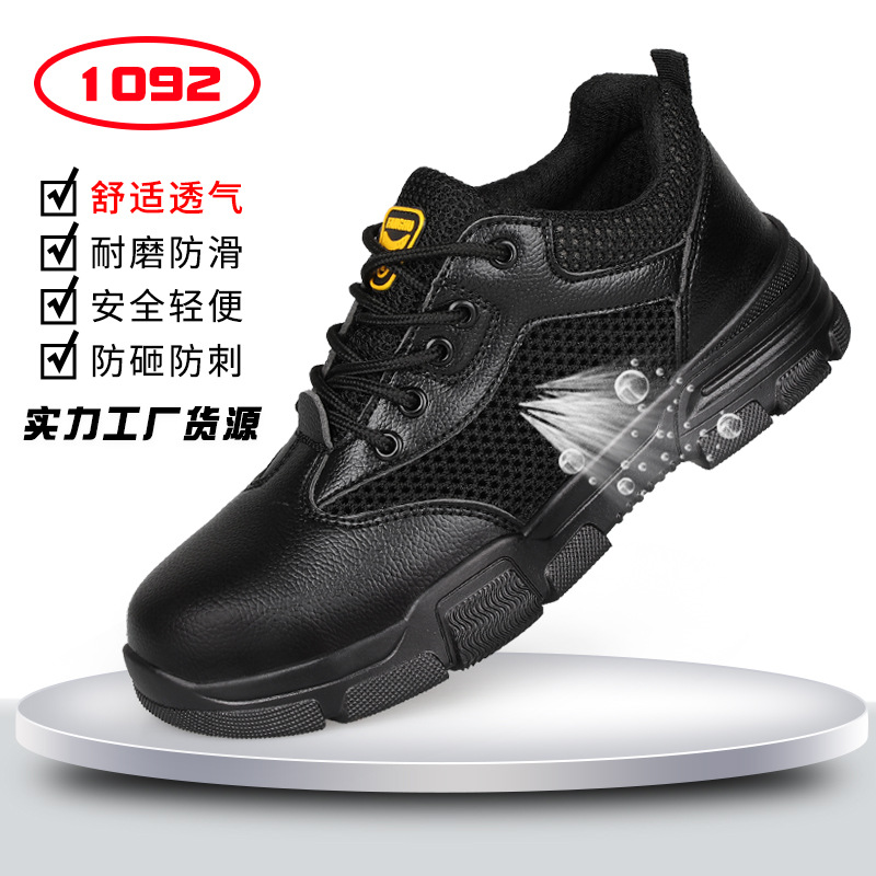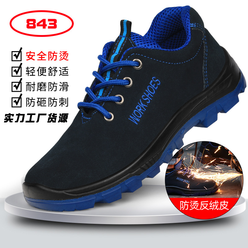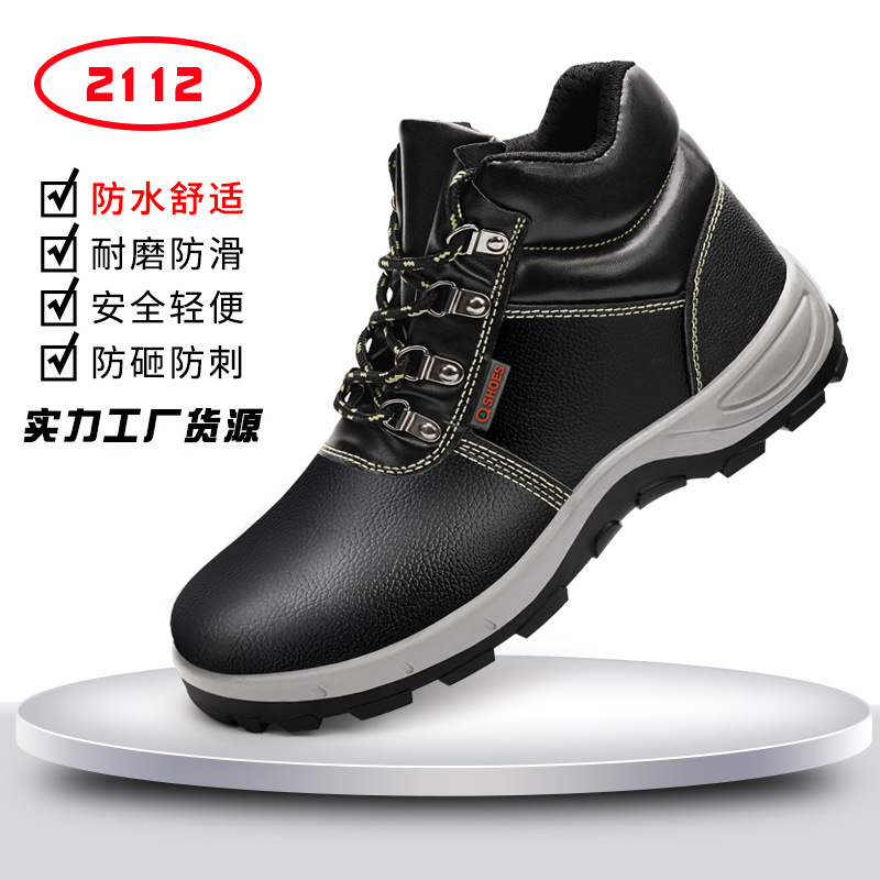 남성용 사계절 안전화, 강판 내장, 방수, 충격 방지, 관통 방지, 건설 현장 작업화, 내마모성, 편안함, 소가죽 안전화스토어 가기