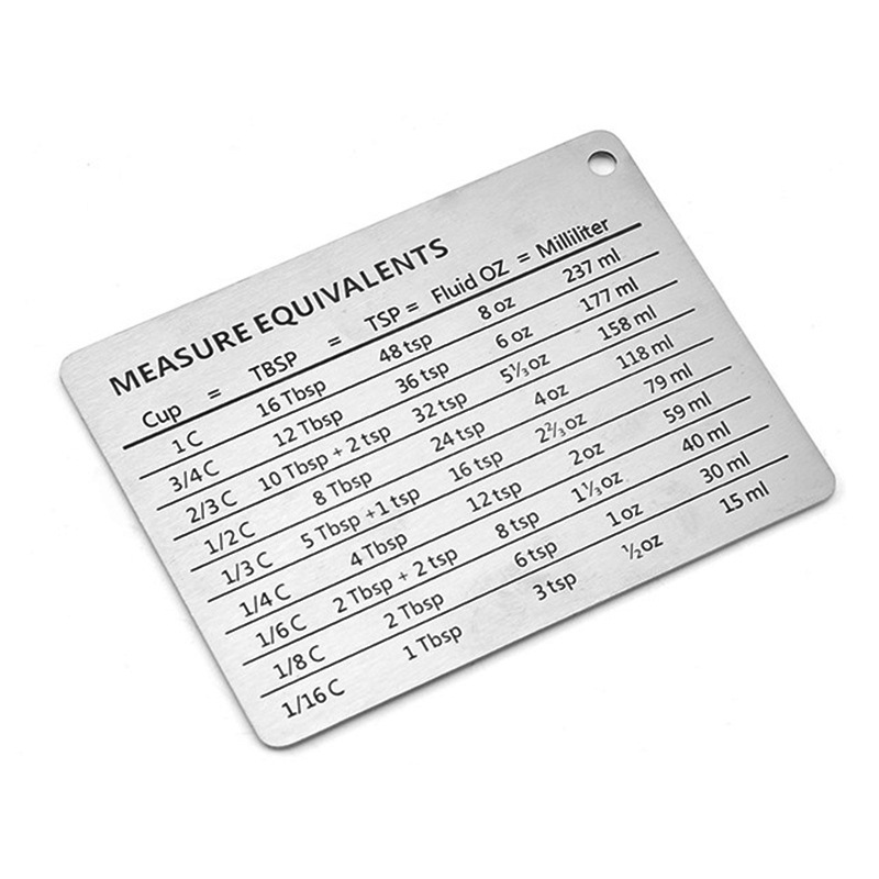 크로스-국경 304 스테인레스 스틸 스케일 변환 보드 자기 냉장고 스티커 측정 컵 측정 숟가락 단위 변환 비교 테이블 베이킹