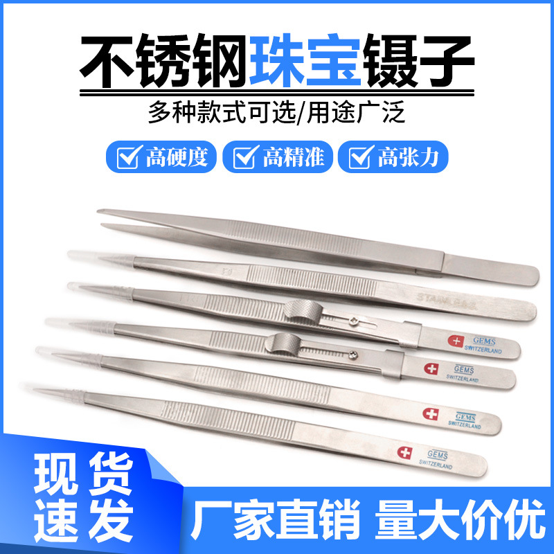 보석 보석 핀셋 도매 304 스테인레스 스틸 핀셋 두꺼운 하드 뾰족한 특수 미끄럼 방지 드릴 클립 미세스토어 가기