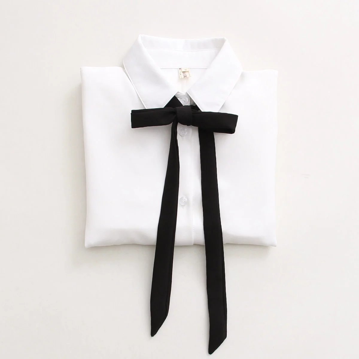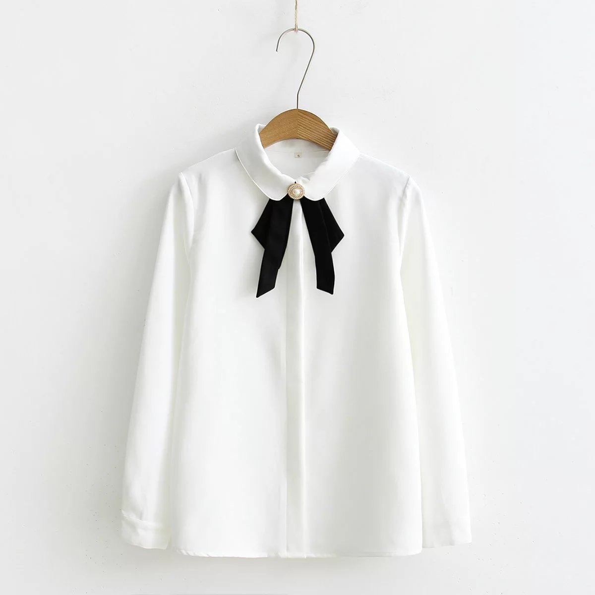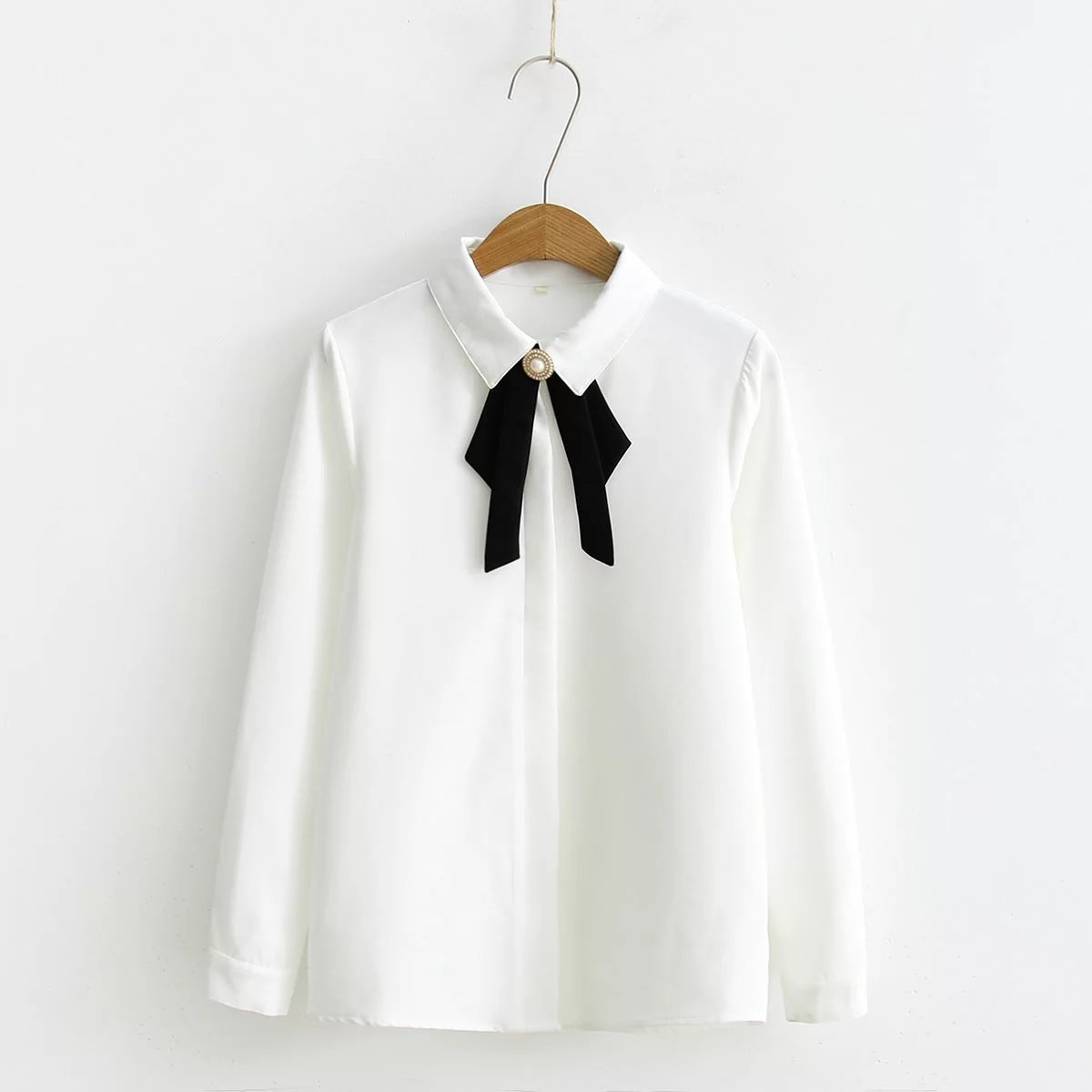 2019 봄 새로운 여성의 한국 스타일 옷깃 슬림 쉬폰 탑 시크 셔츠 여성용 긴팔 베이스 셔츠