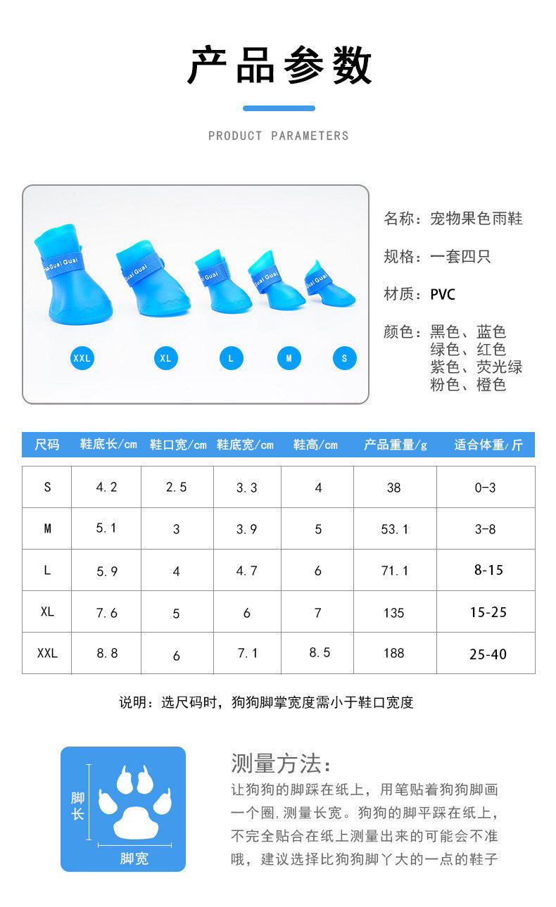 【产品名称】时尚宠物鞋/硅胶宠物猫狗鞋套(4支装/套)