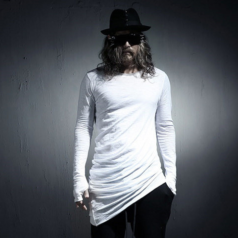 봄과 가을 패션 한국 스타일 남성용 라운드 넥 벙어리장갑 긴팔 티셔츠 순면 슬림 핏 베이스 셔츠 미용사