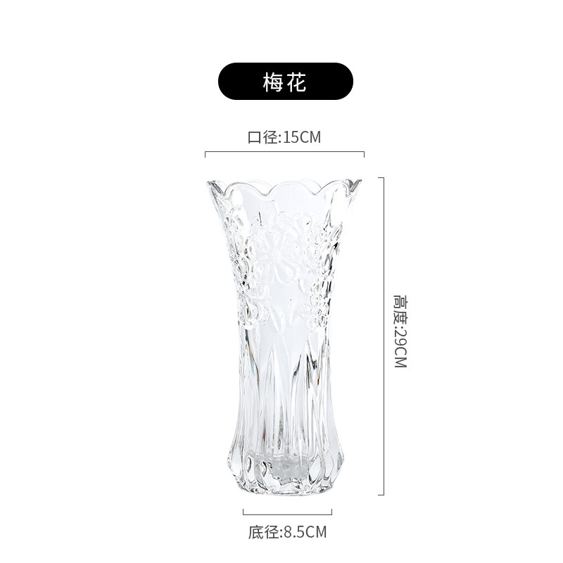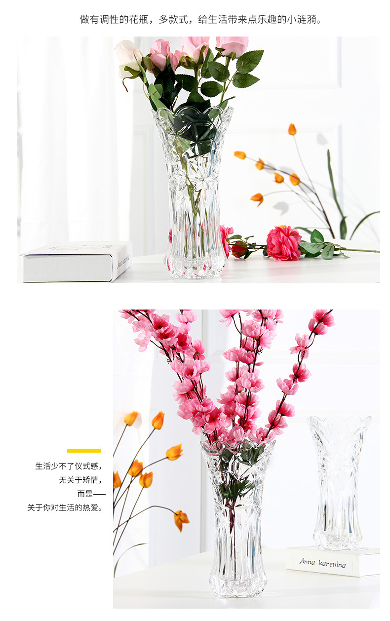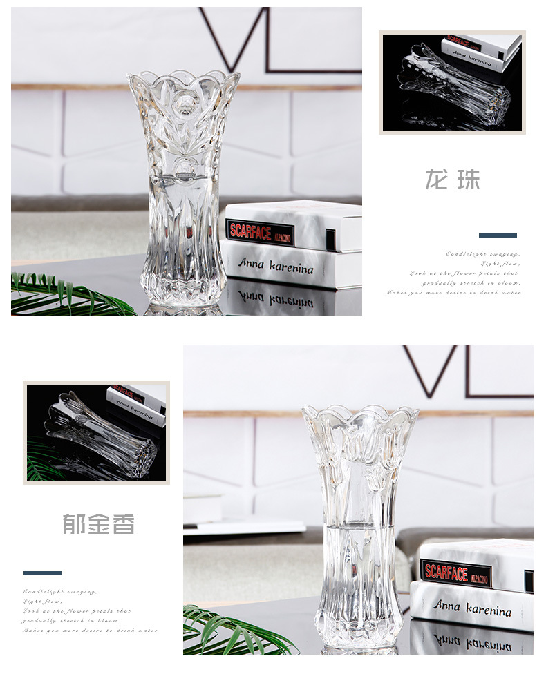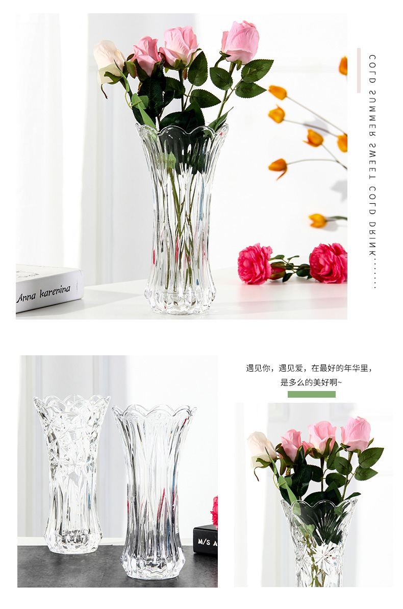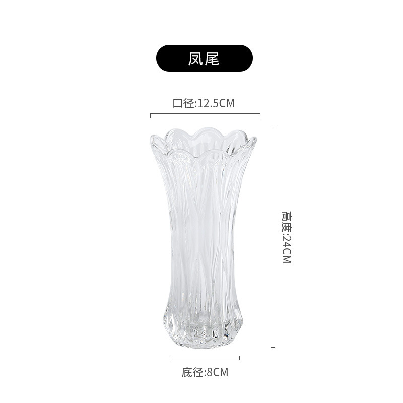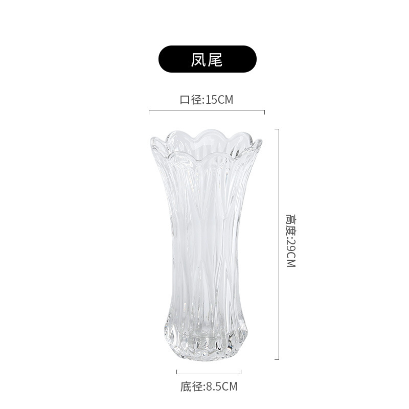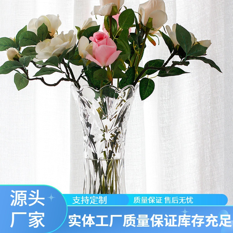 공장 세트 유리 투명 꽃병 간단한 기계 압력 유리 꽃병 도매 거실 장식품 대형 꽃병스토어 가기