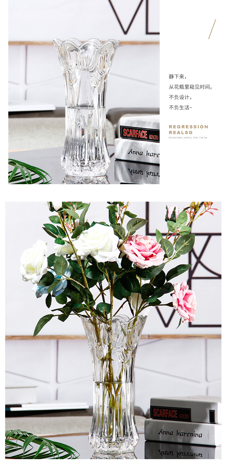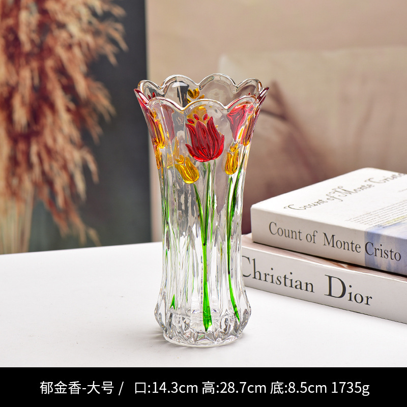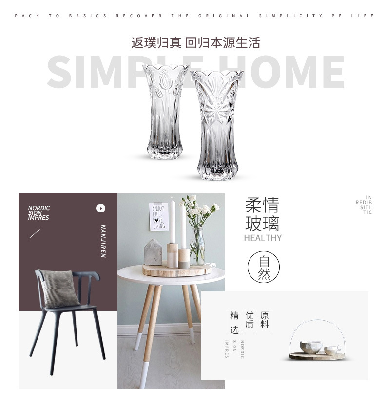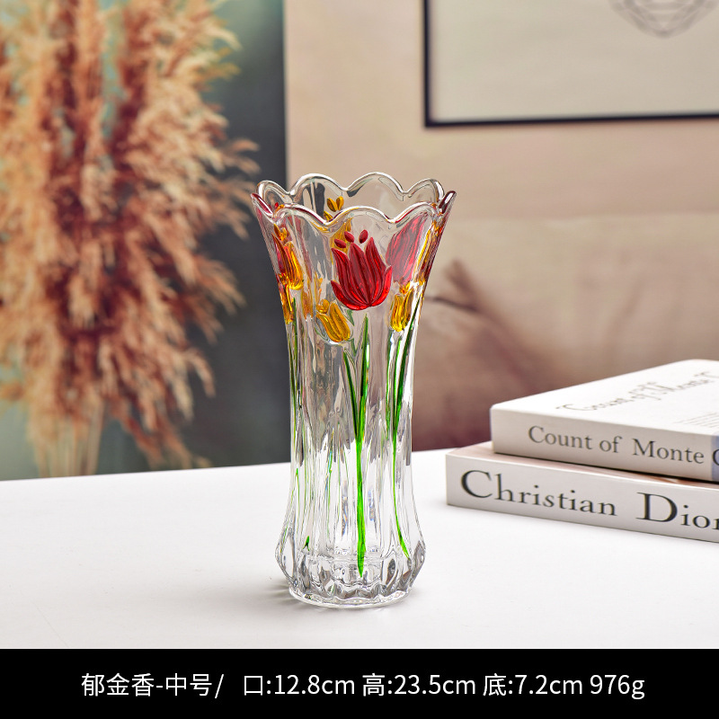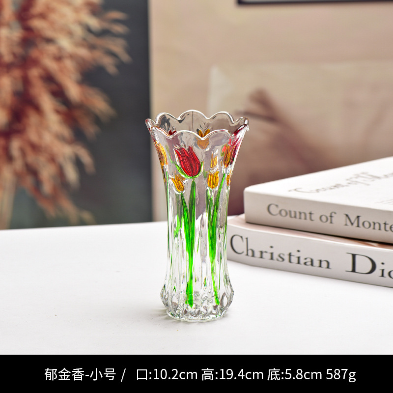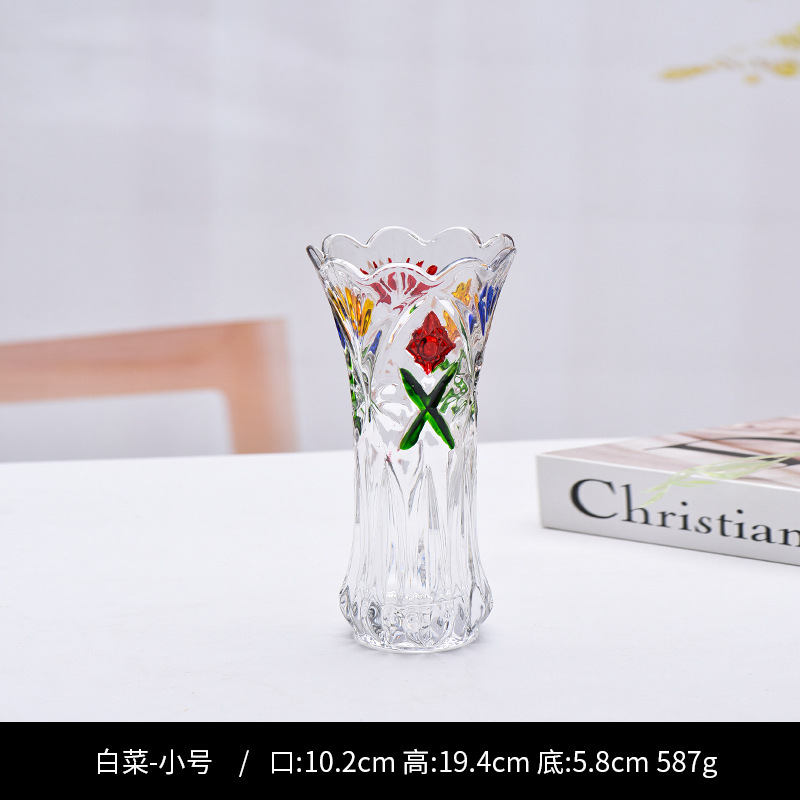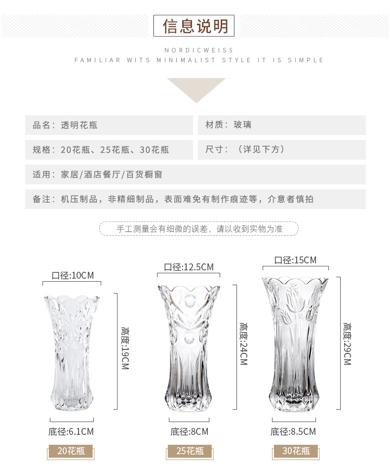 공장 세트 유리 투명 꽃병 간단한 기계 압력 유리 꽃병 도매 거실 장식품 대형 꽃병스토어 가기