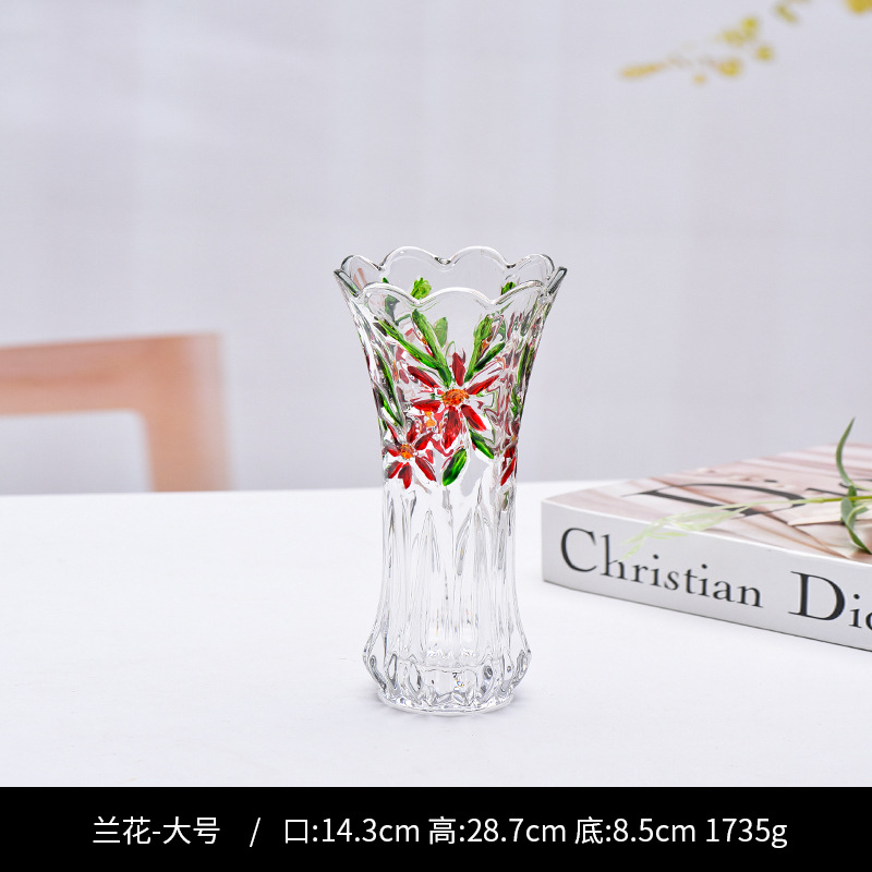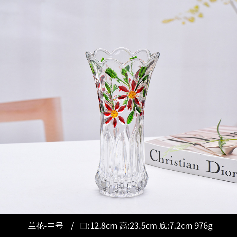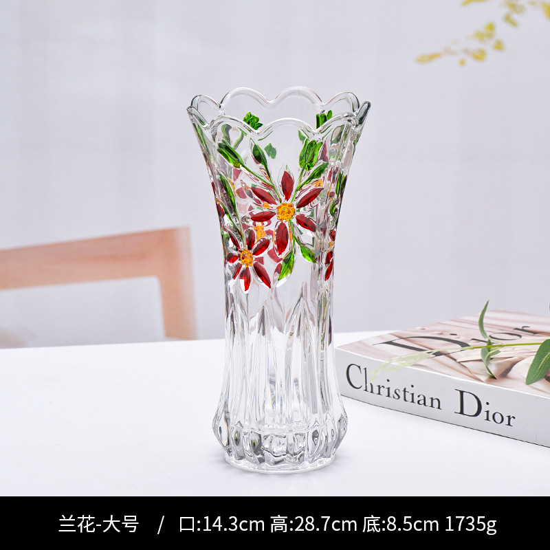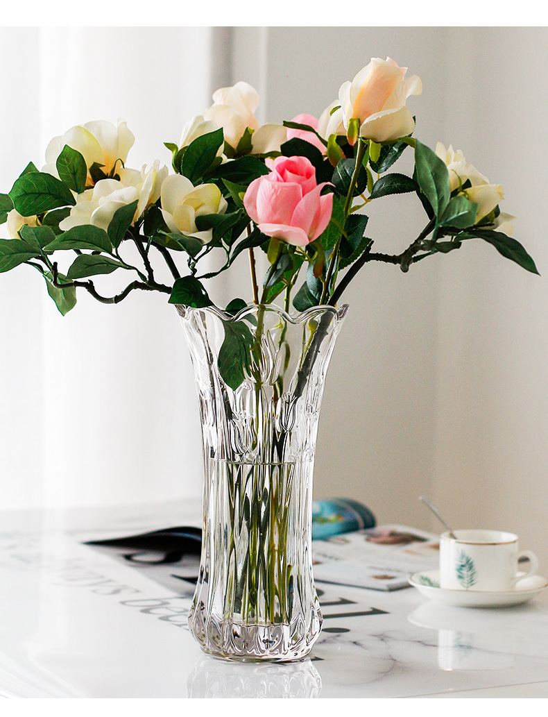 공장 세트 유리 투명 꽃병 간단한 기계 압력 유리 꽃병 도매 거실 장식품 대형 꽃병