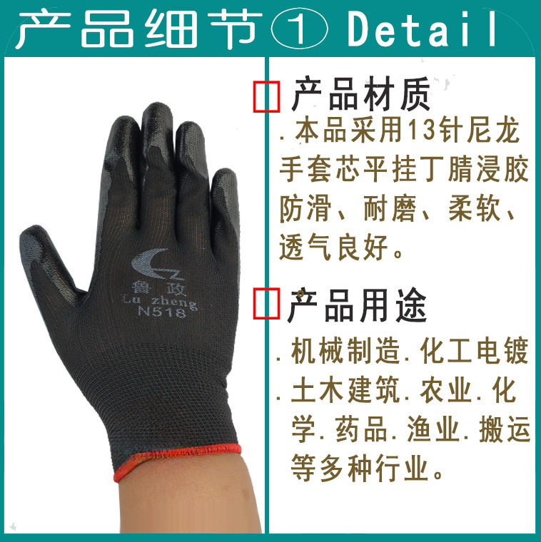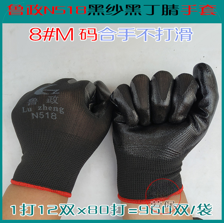 【商品名称】:鲁政N528黑纱黑丁腈浸胶手套