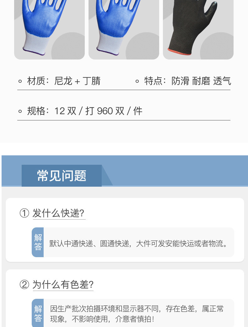 노동 보호 장갑 라텍스 폼 내마모성 통기성 미끄럼 방지 창고 취급 건설 현장 두꺼운 작업 절연 장갑