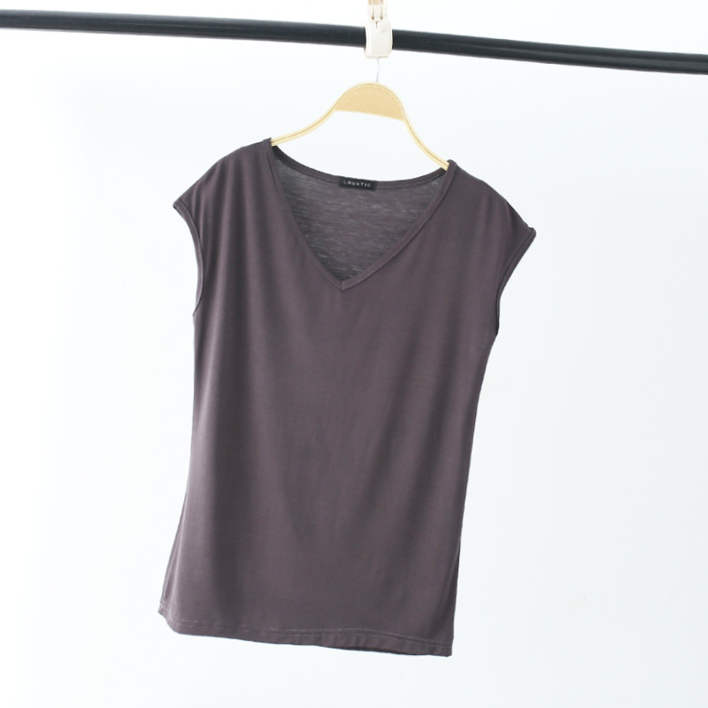 모달 티셔츠 여성용 2026년 여름 한국 스타일 여성복 신상 민소매 브이넥 슬림핏 이너웨어 탑 트렌디