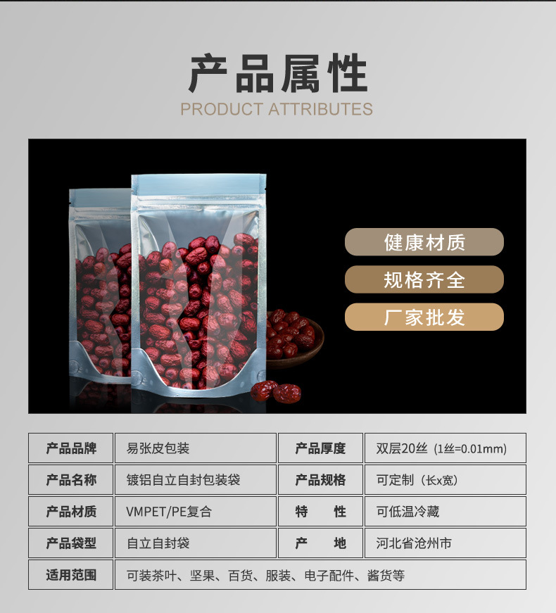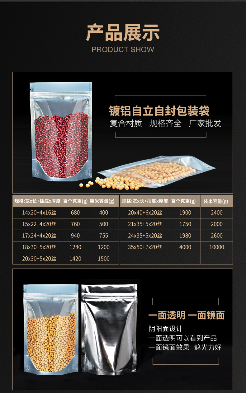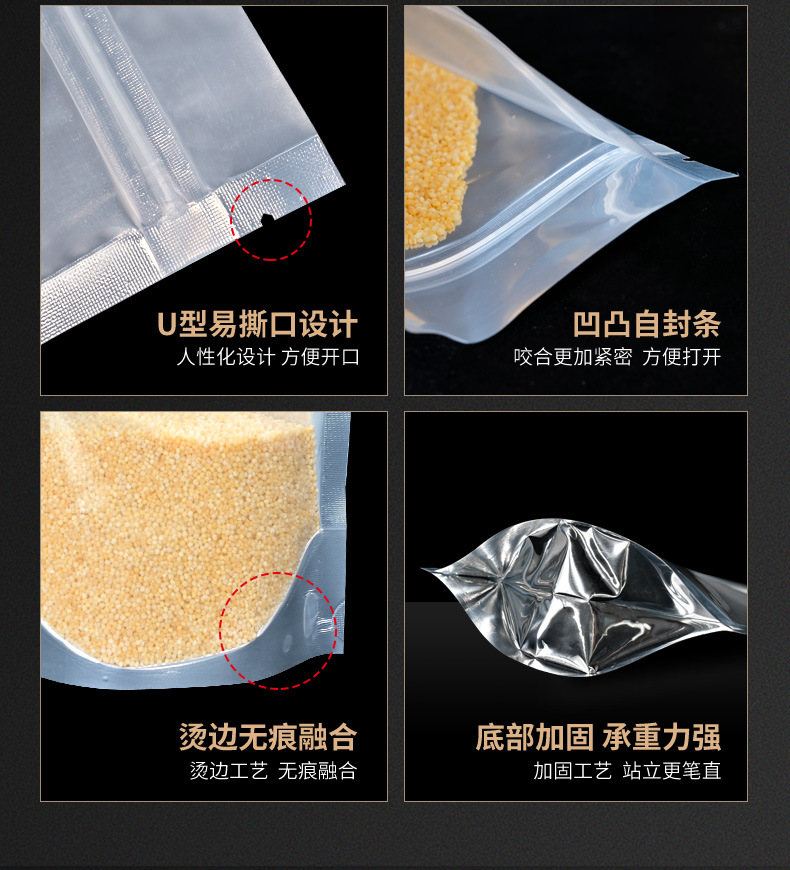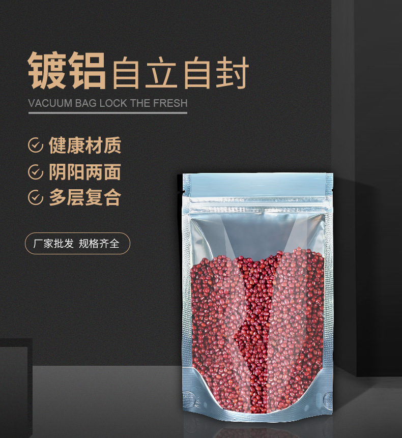 퍼지기 쉬운 가죽 재고 포장 가방 음양 알루미늄 자가 밀봉 백 투명 식품 티 너트 밀봉 지퍼 백