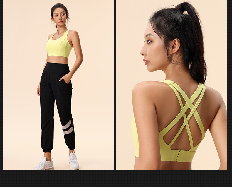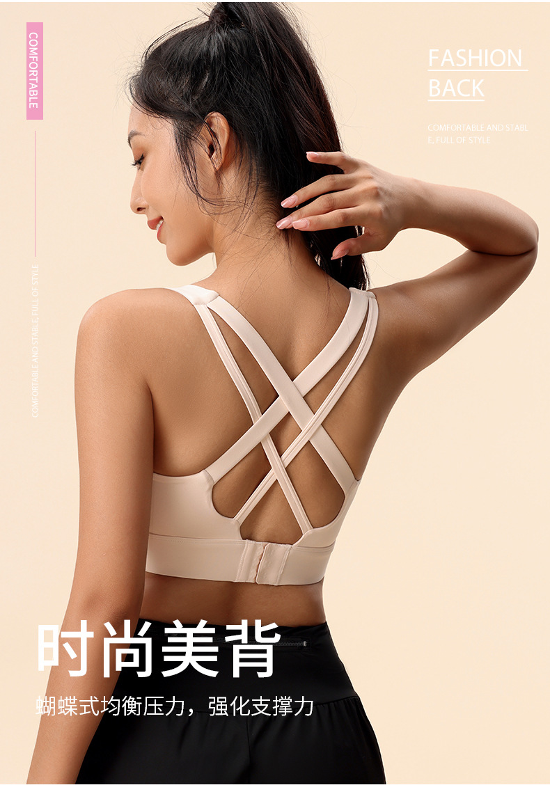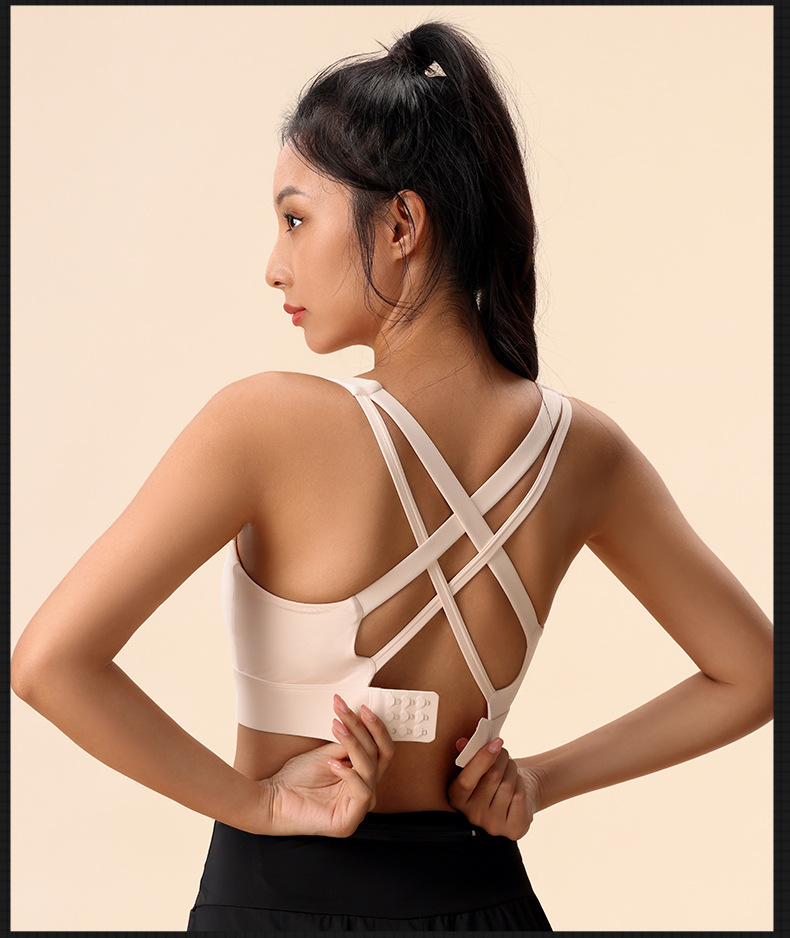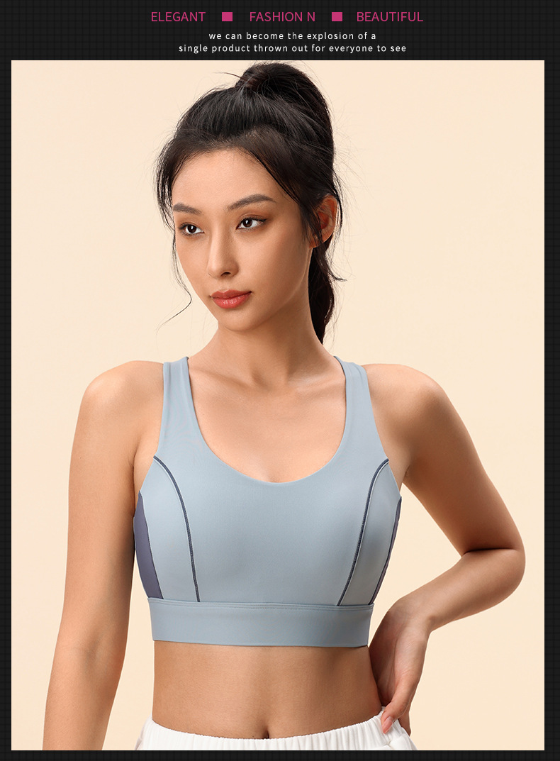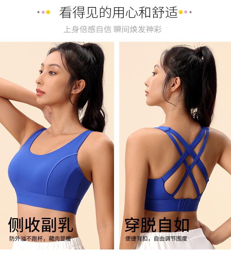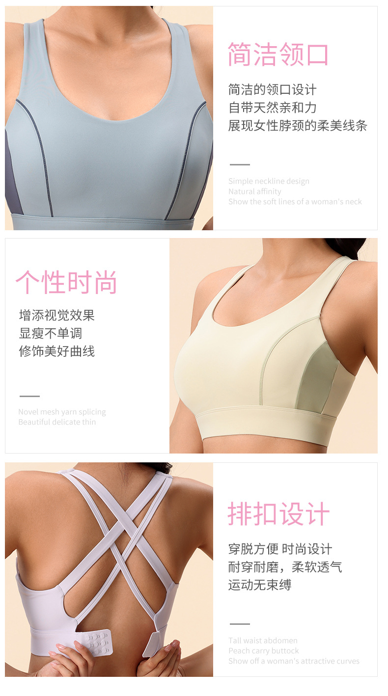 크로스보더 새로운 대비되는 컬러 원피스 컵 크로스 스포츠 뷰티 백 충격 방지 개더링 액세서리 밀크 스포츠 속옷 브라