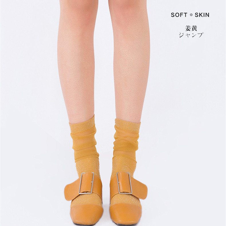 현대 레드 새로운 레이스 이중 목적 스태킹 양말 얇은 현대 레드 패션 골드 및 실버 실크 여성용 중간 길이 양말스토어 가기