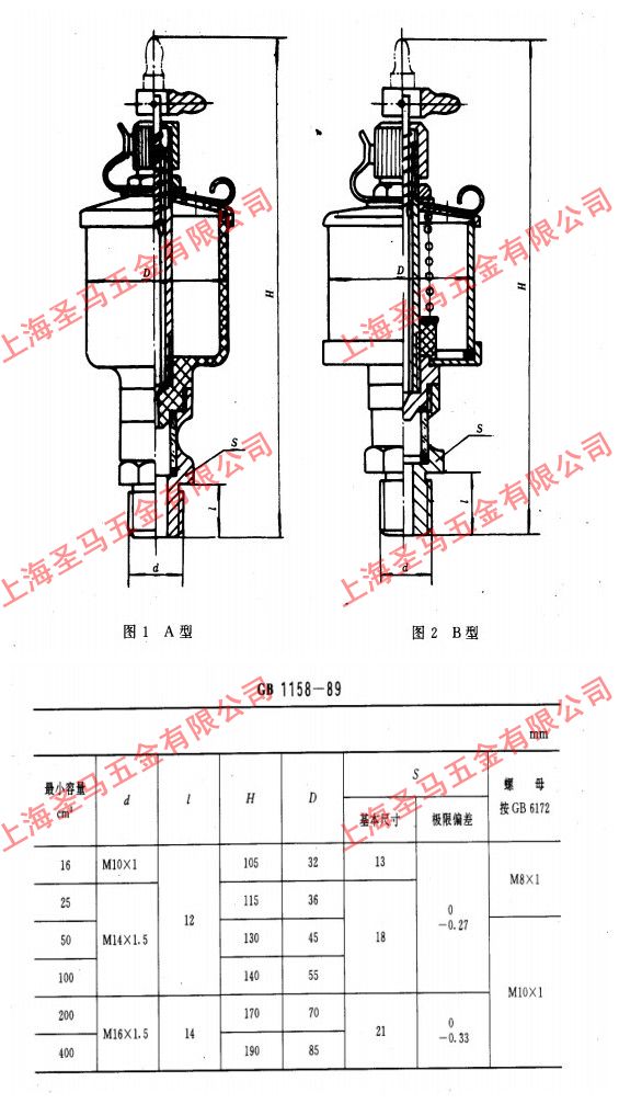 本公司生产GB1158-89 JB/T7940.6-95铁针阀式油杯(玻璃油杯)、规格有公制M6-M20、英制1/8-1/2.容量10-1000CC。