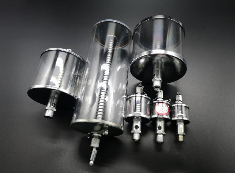 用途:杯体储存润滑油,供向运动机件滴注润滑油用,通过透视管,可观察,调节油杯的针阀位置,控制滴油速度。