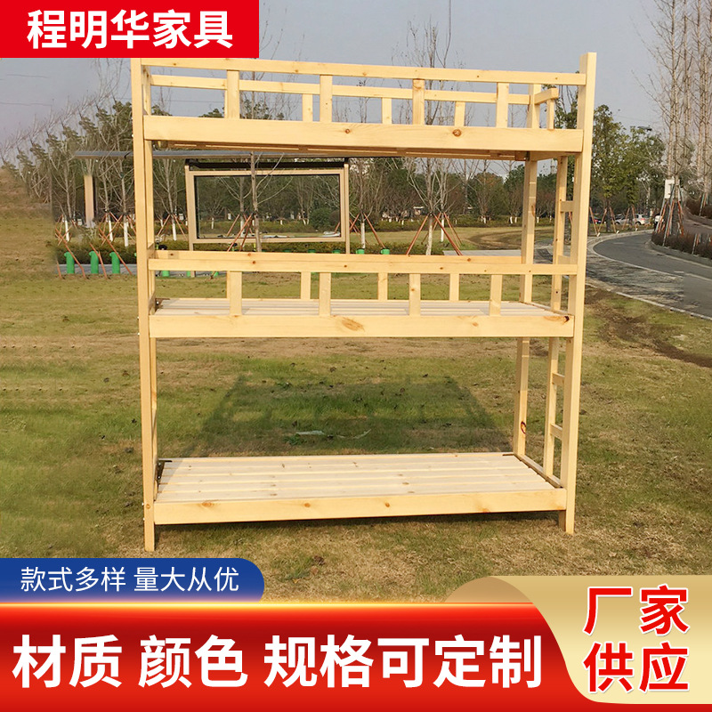 공장 도매 3 단 솔리드 소나무 나무 침대 유치원 점심 시간 학생 기숙사 상하 선반 3 단 나무 침대