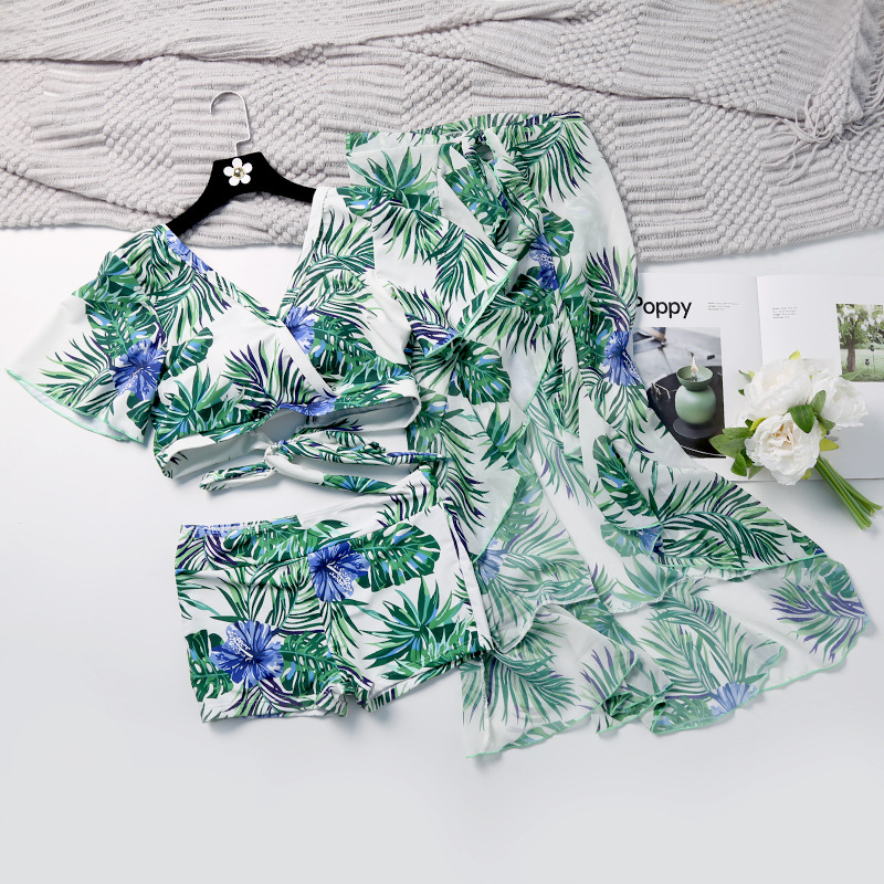 공장 도매 새로운 커플 수영복 패션 세트 여자의 3 피스 섹시 스플릿 복서 바지 남자의 5 점 바지