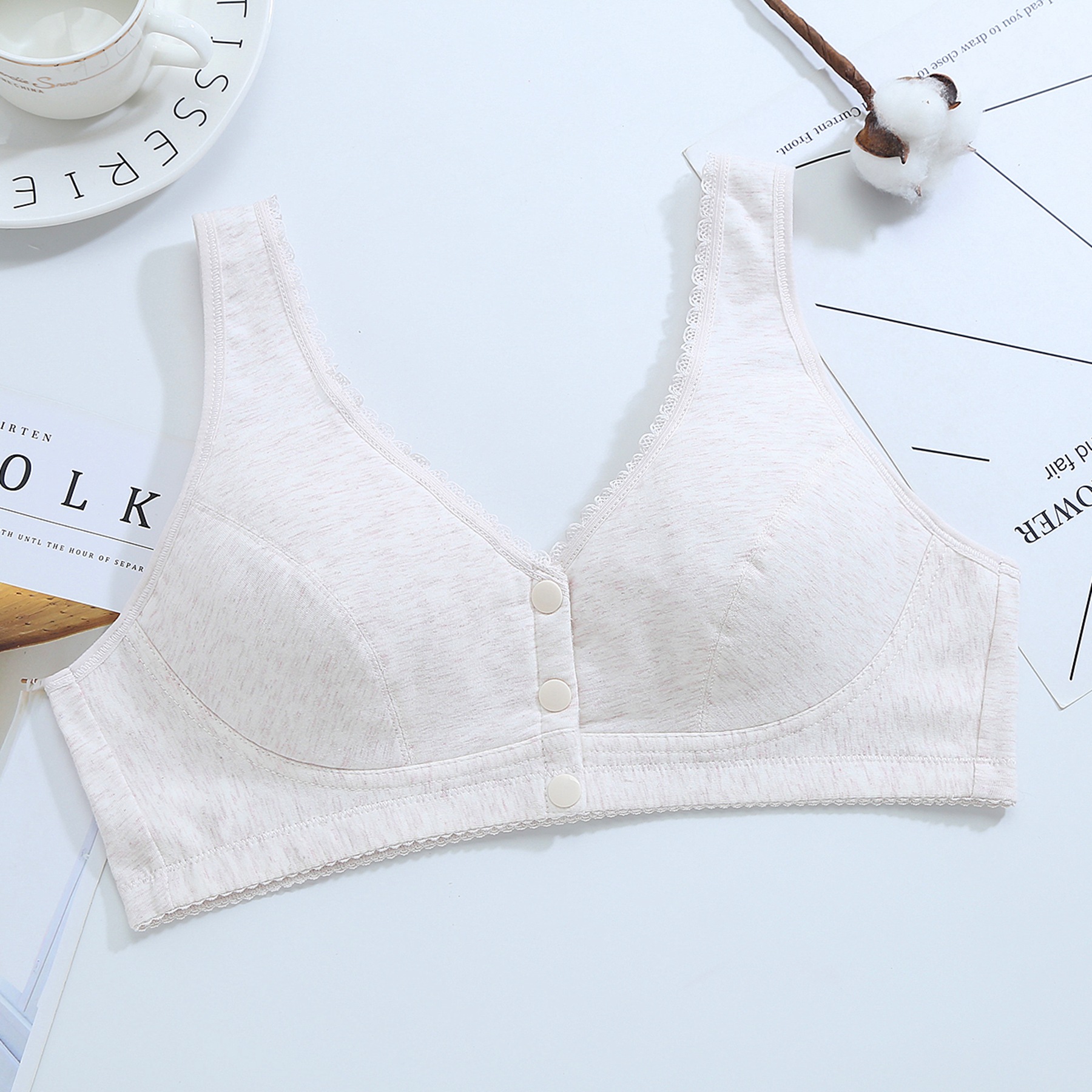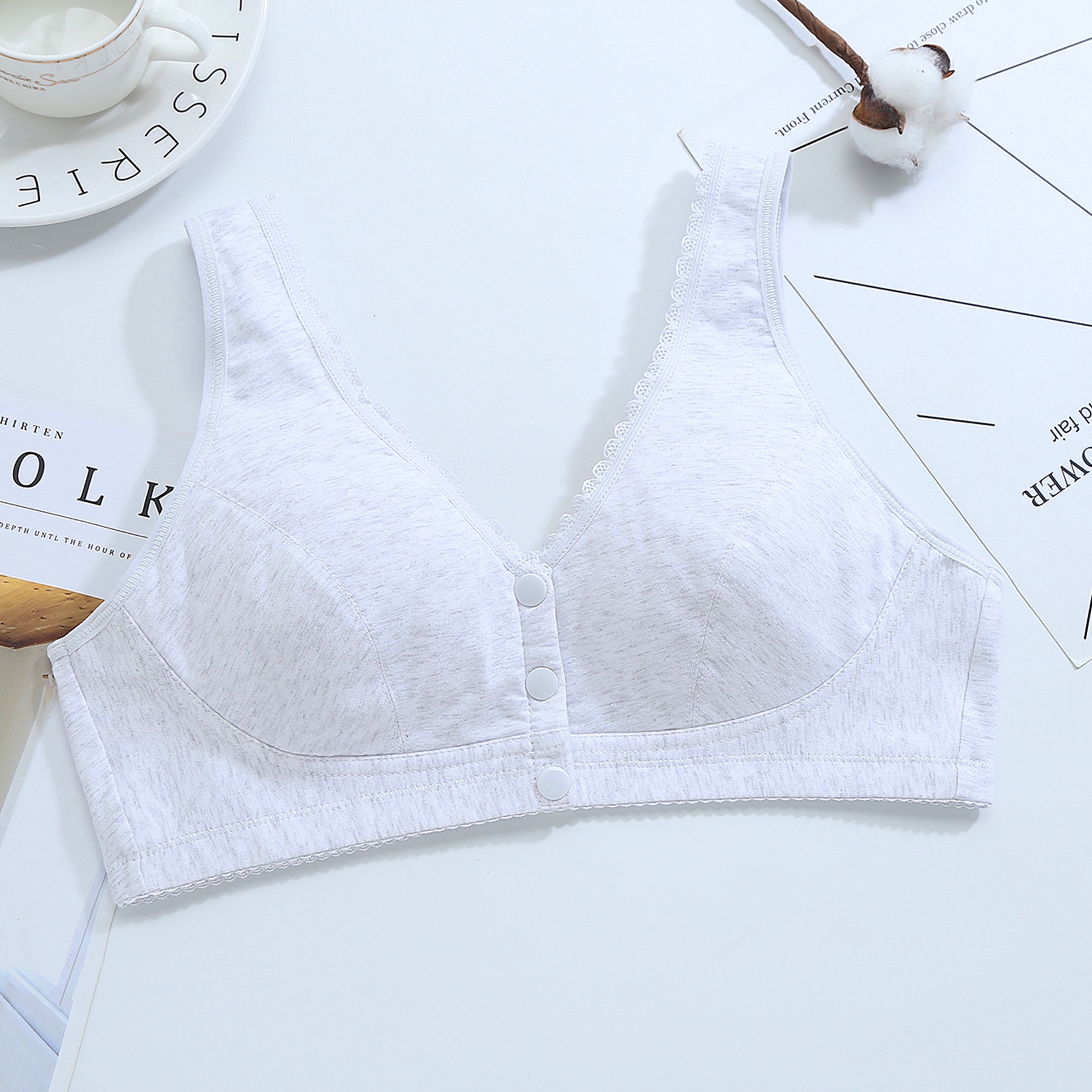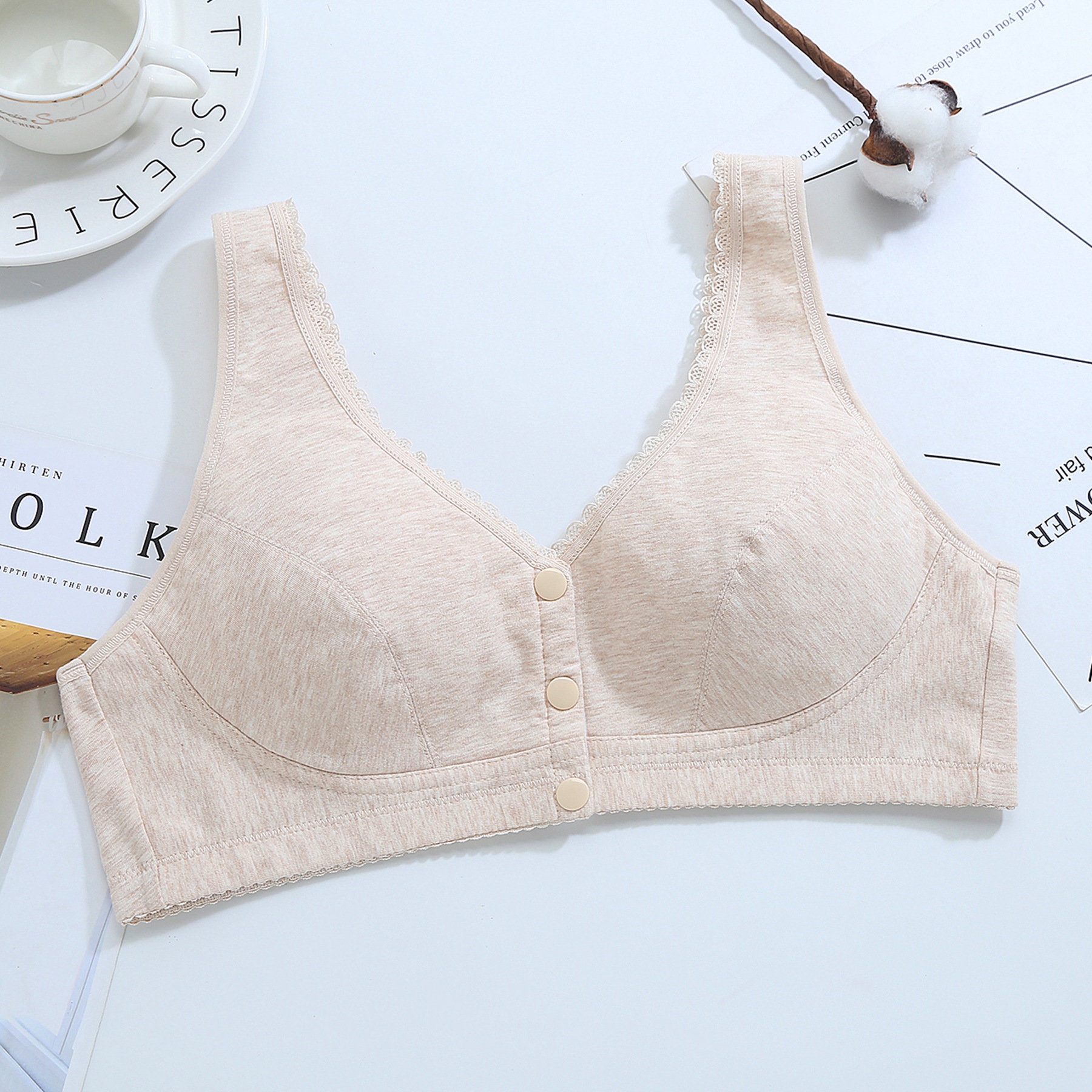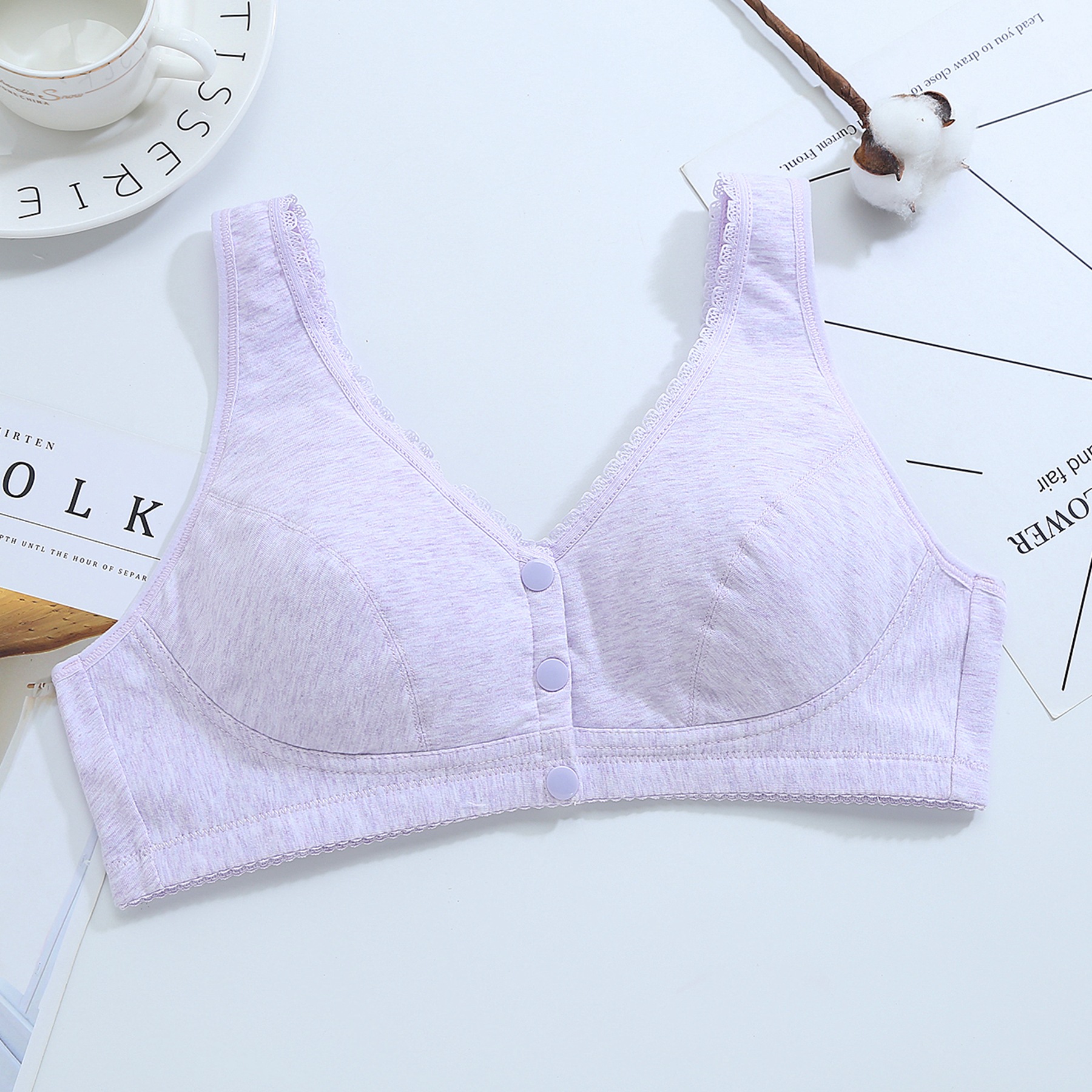 Zhangyan No 스틸 링 플러스 사이즈 프론트 버클 속옷 중년 및 노인 레이스 가장자리 조끼 요가 수면 임신 여성의 면 패딩 브래지어