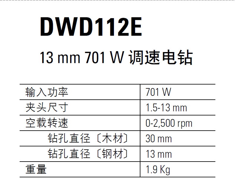 • 13mm701W 헤비 듀티 전기 drill-DWD112E