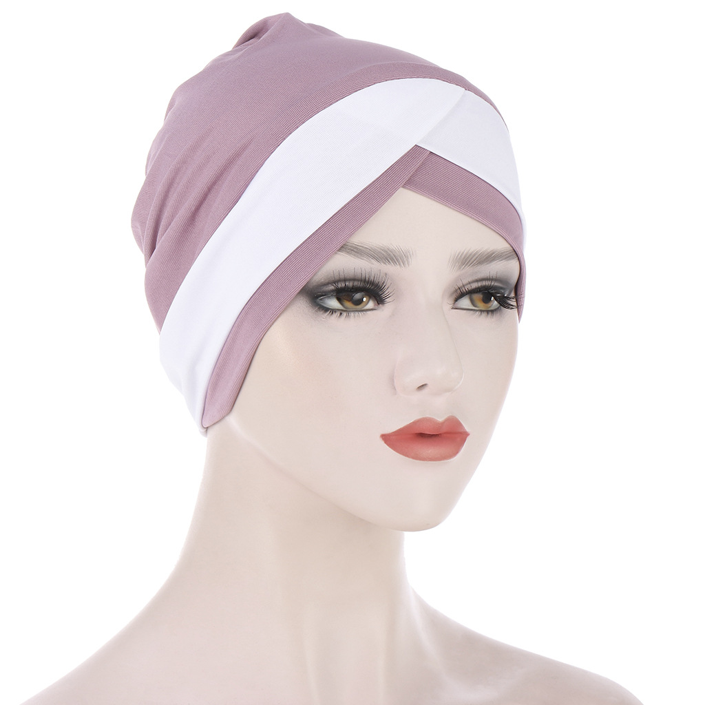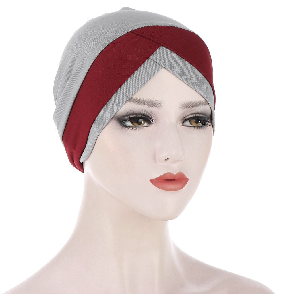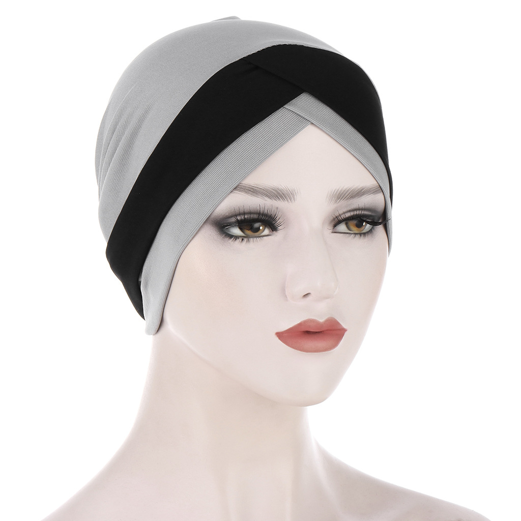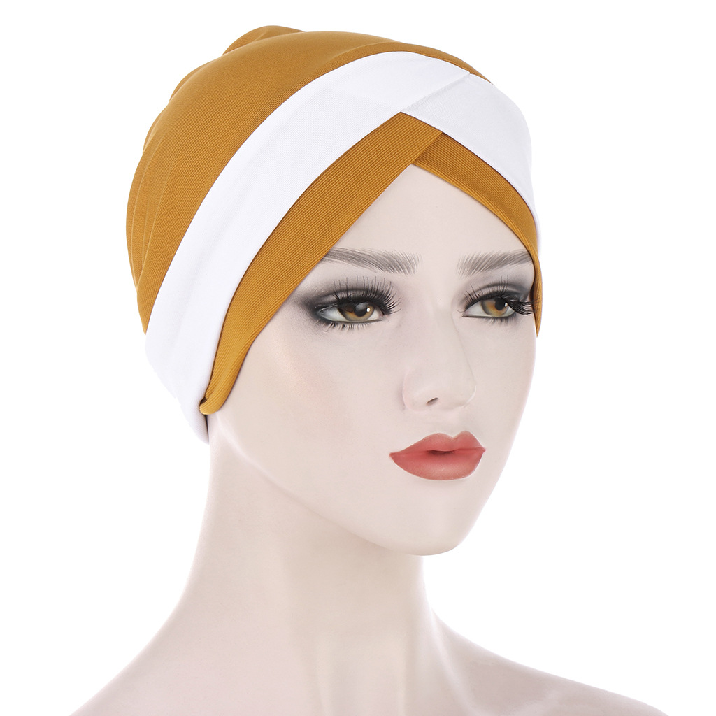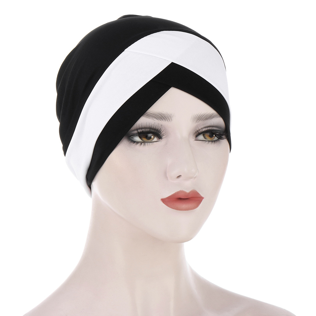 欧美亚马逊新款弹力布前额交叉印度帽 水晶麻头巾帽 穆斯林打底帽