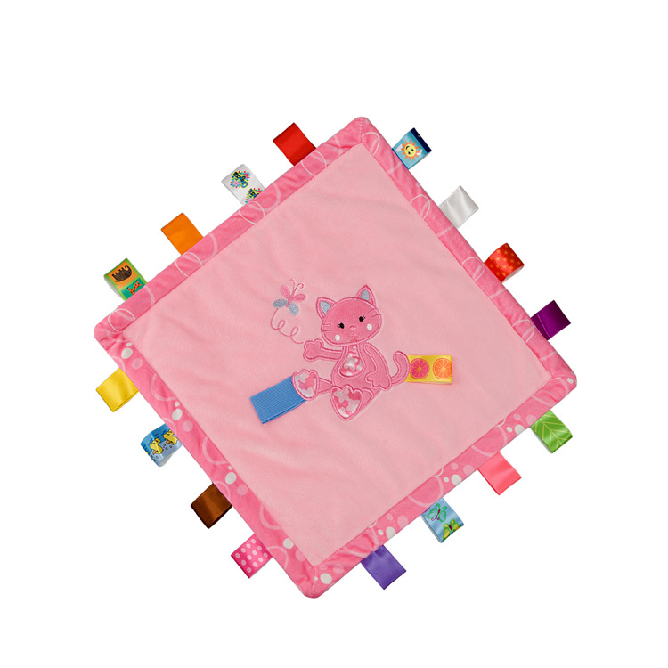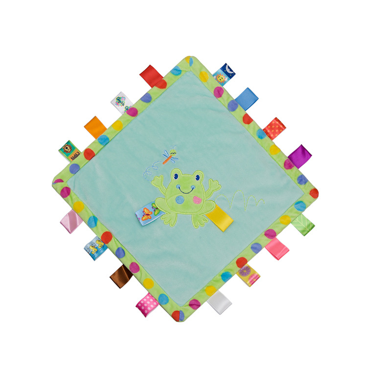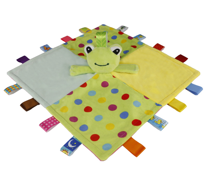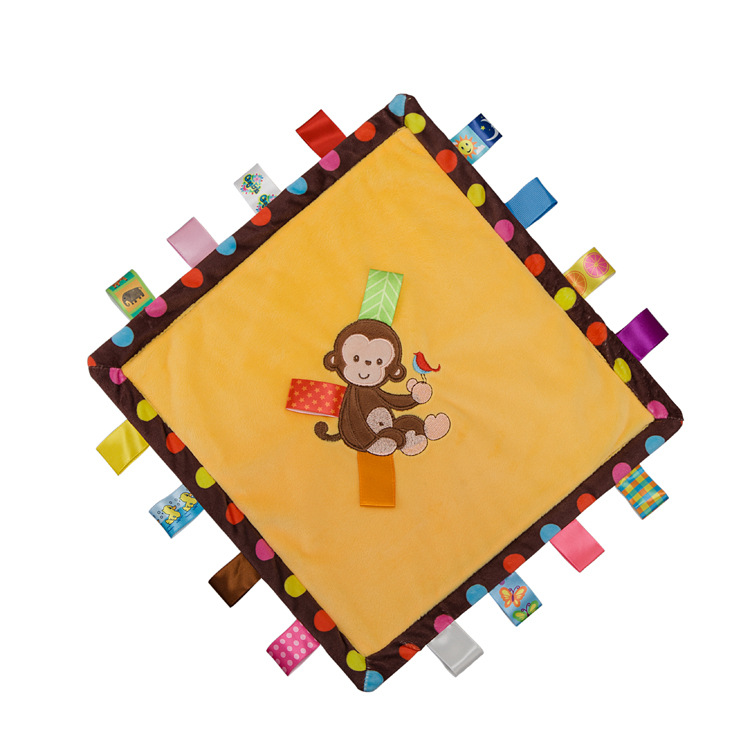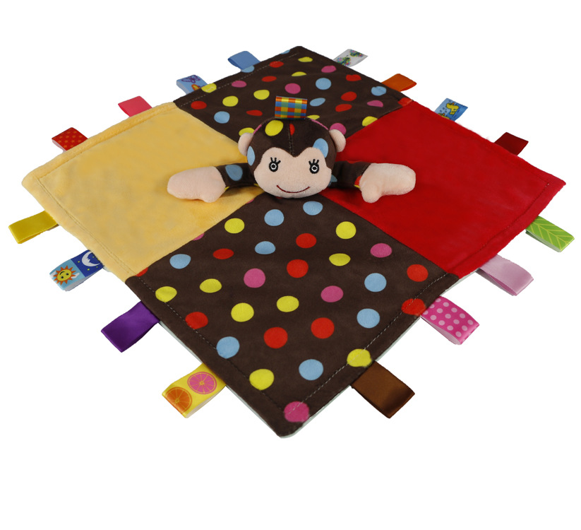 安抚巾是一个可以满足宝宝心理需要的小物件,细心的妈妈应该能注意到小宝宝在吃奶的时候,手里总喜欢捏点什么,这时候给娃娃抱着嫌大,给个玩具又硬,安抚巾就是很好的选择哦。柔软的玩具能带给宝宝心里上的安全感。由于宝宝随时随地都要带来身边,睡觉时也要抱着睡。这里有妈妈和自己的味道吗,俗称安抚巾。