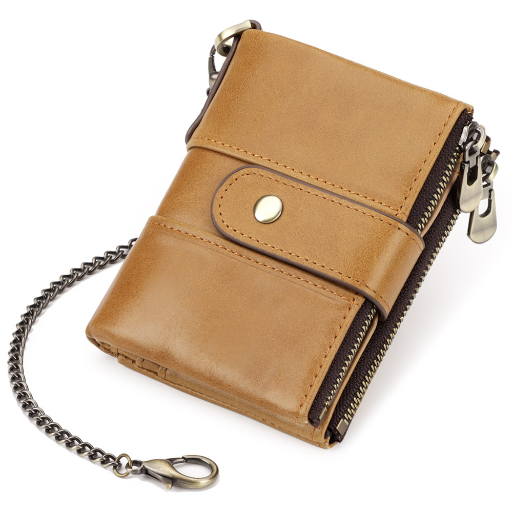 해머폴 RFID 천연가죽 지갑, 1등급 소가죽, 멀티 카드 슬롯, 카드홀더, 버클 지퍼, 레트로 캐주얼 동전 지갑스토어 가기