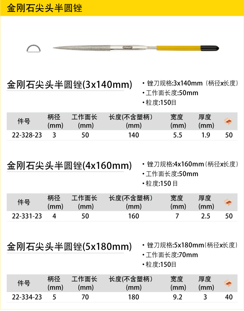 STANLEY/STANLEY 다이아몬드 플랫 헤드 플랫 헤드 반원형 뾰족한 헤드 라운드 파일 22-328 가정용 파일