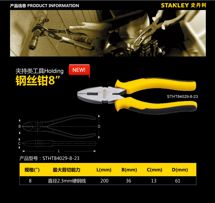 스탠리 와이어 플라이어 7 인치 8 인치 타이거 플라이어 볼트 플라이어 다기능 와이어 커터 가정용 클램핑 도구 플라이어