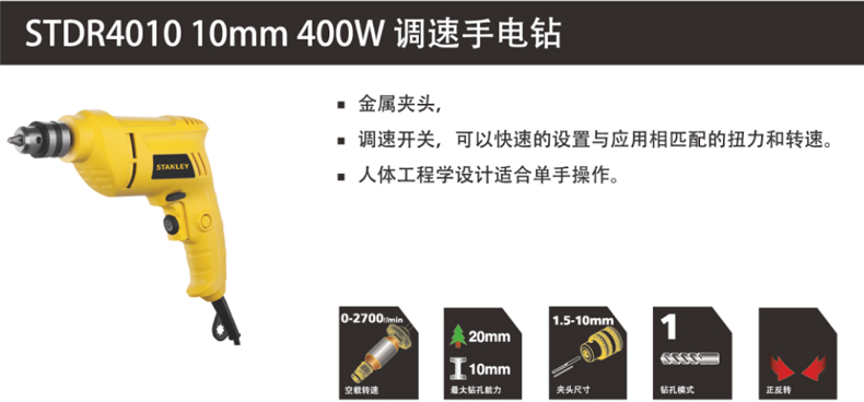스탠리/스탠리 STDR4010 핸드 전동 드릴 홈 스크루 드라이버 전방 및 역방향 핸드 건 드릴 전동 공구스토어 가기