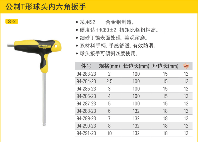 핸들이 있는 스탠리/스탠리 미터법 T자형 볼 알렌 렌치 볼 헤드 2 ~ 10mm