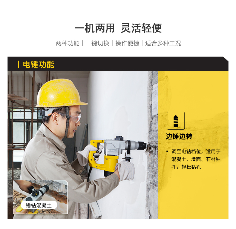 스탠리 전기 망치 전기 픽 이중 목적 다기능 임팩트 드릴 고출력 전문가급 콘크리트 전기 드릴 전동 공구스토어 가기
