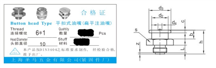 Button  Head   平扣式油嘴(船用)。材质有铜、铁、不锈钢。种类齐全、价格优惠。产品符合美国、德国、日本、中国等国家标准。投放市场后已为国内企业引进设备的国产化配套和产品进入国际市场而广泛采用。