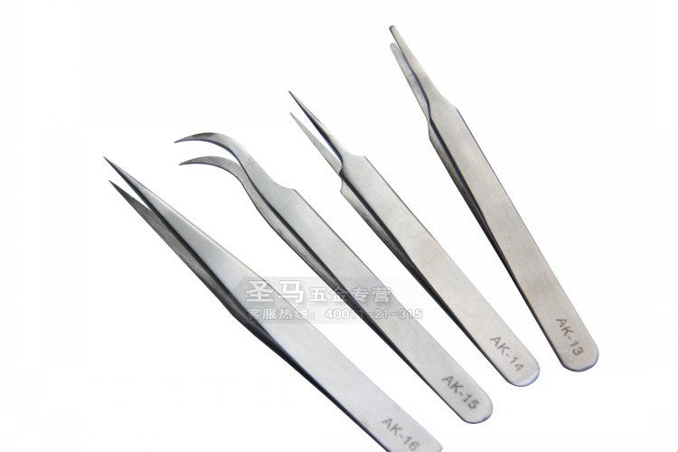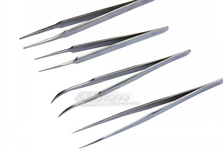 产品说明:此款不锈刚精密镊子采用不锈钢材料制做而成,防磁、防酸、防腐蚀等,在操作中含磁性含锈元件使工作中方便、更安全,并且坚固耐用,可减少对制作小零件纸模的难度。
