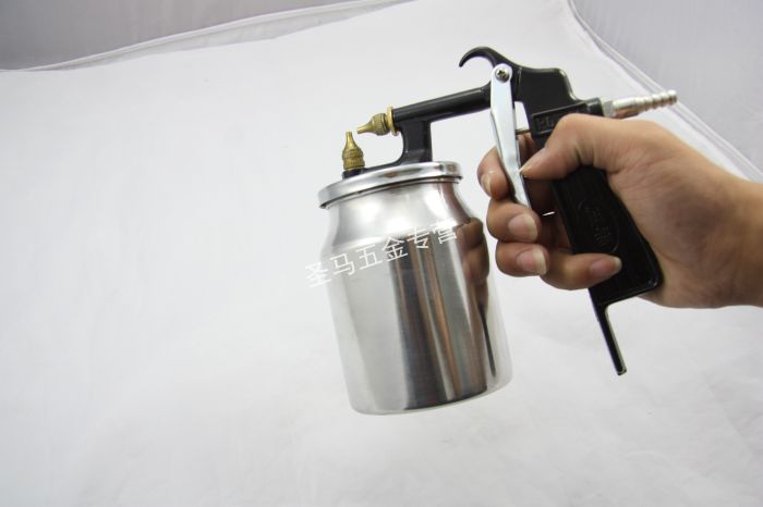 本型号为吸射式喷枪,使用时,旋紧罐盖,连接好输气